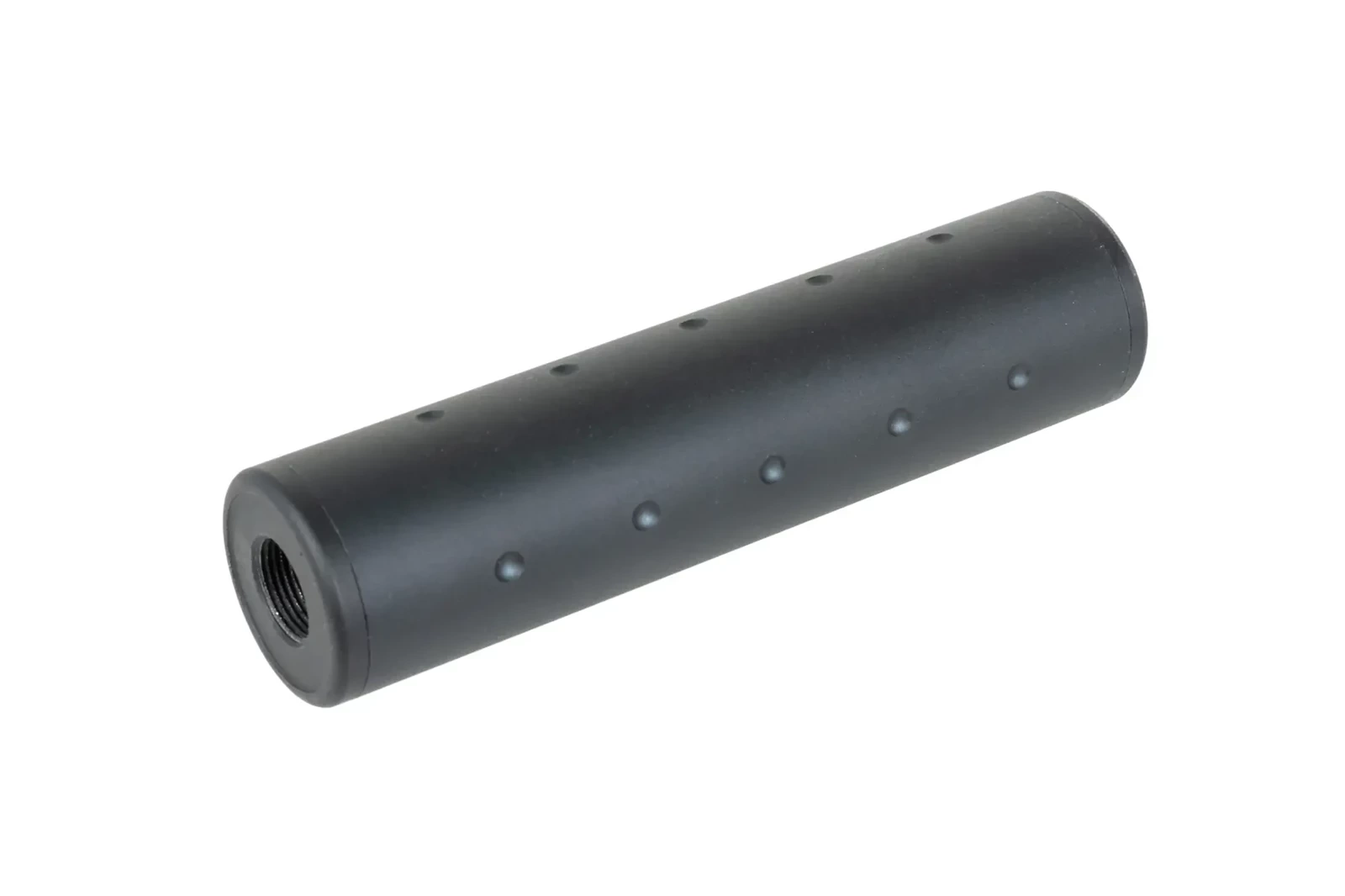 Tłumik dźwięku wykonany z aluminium, posiada gwint 14mm CCW, który umożliwi szybki montaż na szerokim gronie replik ASG. Produkt jest lekki oraz wytrzymały. Wewnątrz modelu znajduje się pianka, która pozwoli wytłumić dźwięki podczas strzałów.