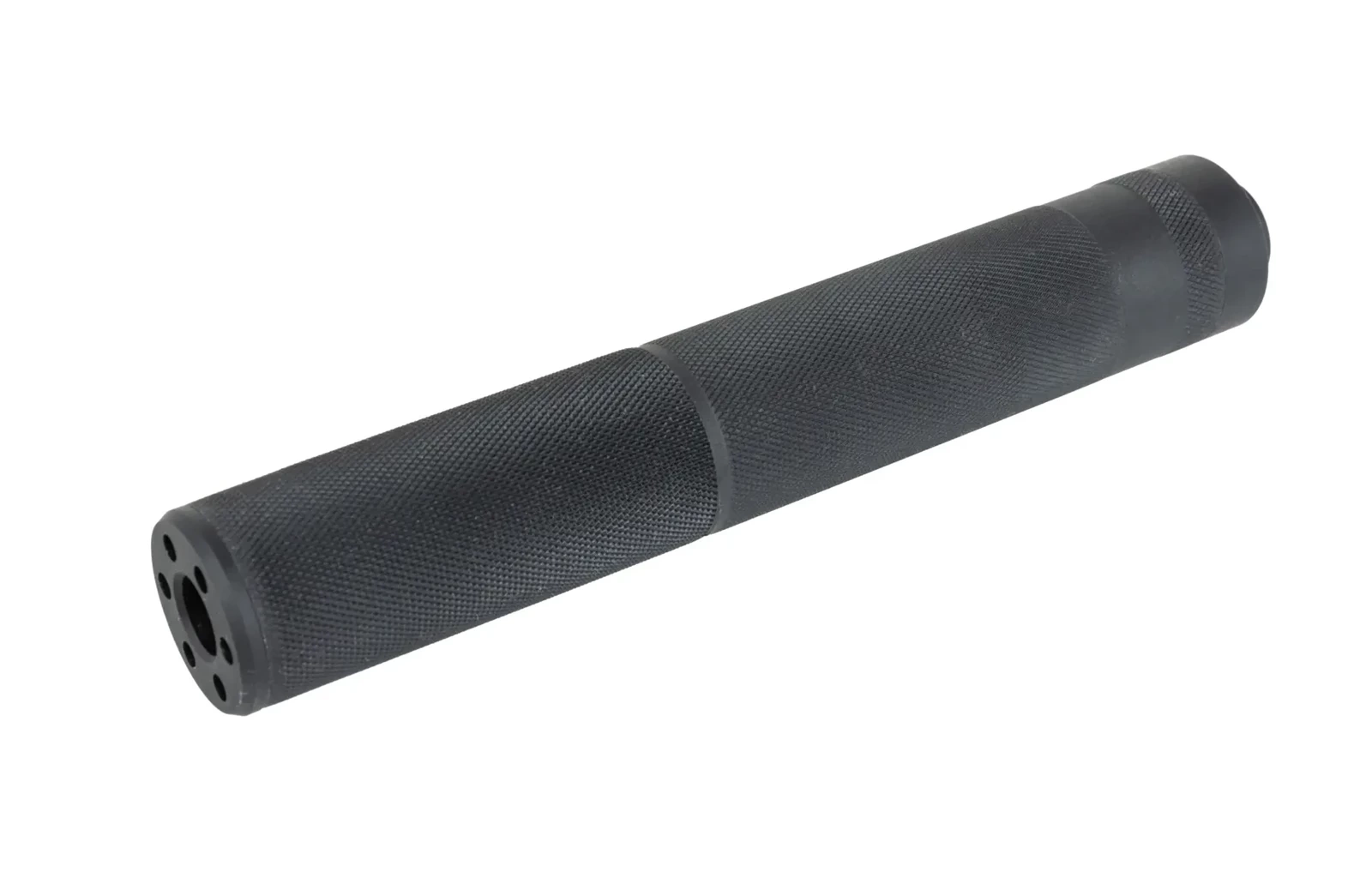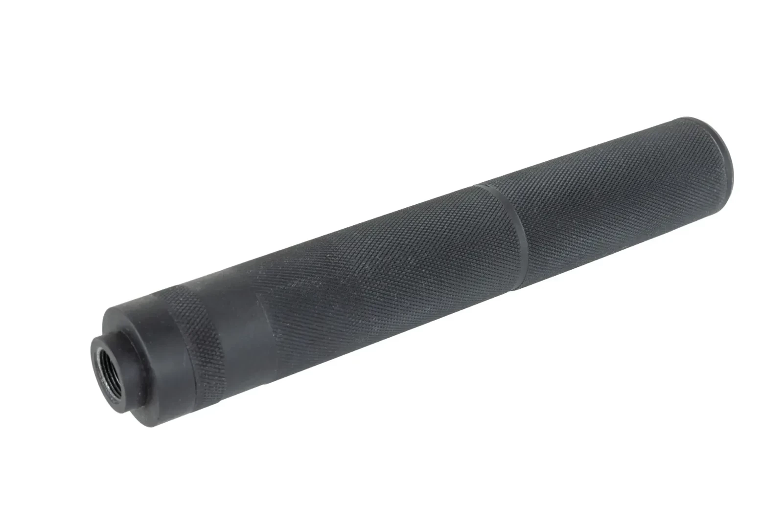 Tłumik dźwięku wykonany z wytrzymałego aluminium. Posiada gwint 14mm CCW. Wewnątrz znajdują się pianka tłumiąca. Oprócz trwałego wykonania, produkt cechuje się ciekawym wyglądem, który pozwoli wyróżnić się na polu airsoftowym.