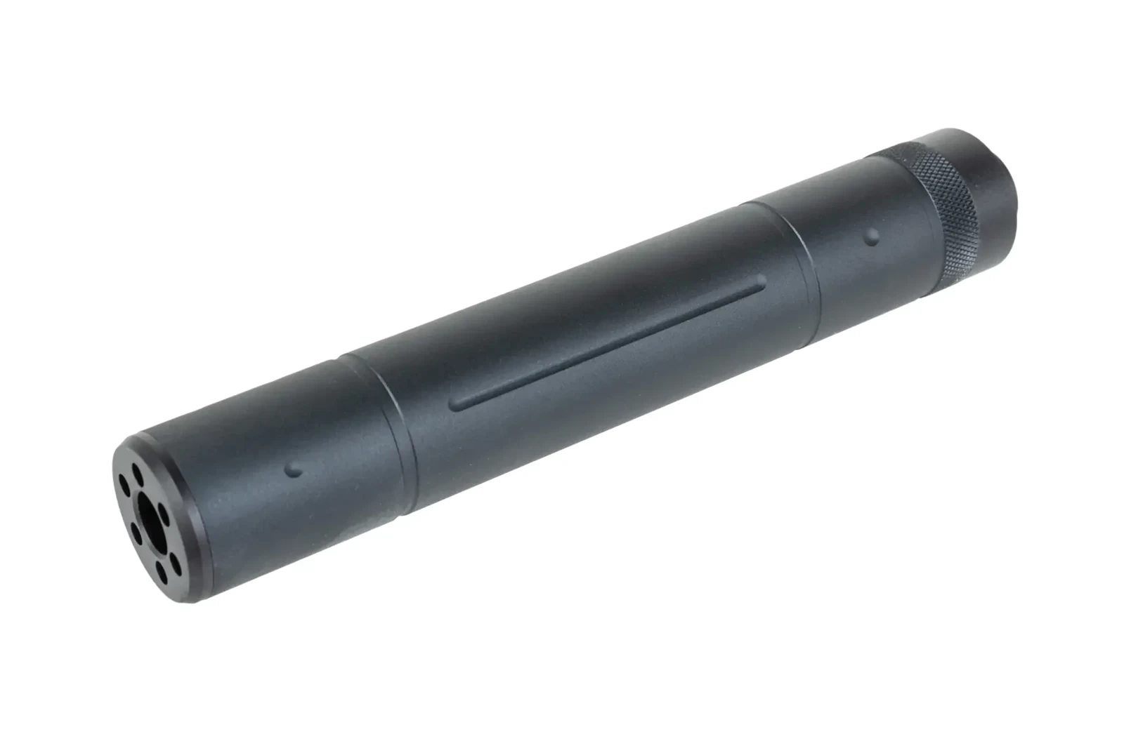 Wykonany z aluminium, tłumik dźwięku do replik AEG. Model posiada gwint 14mm CCW, który umożliwi mocowanie na szerokim gronie karabinków ASG.