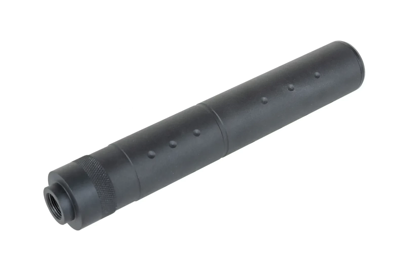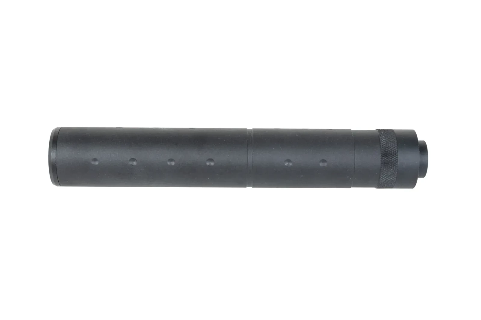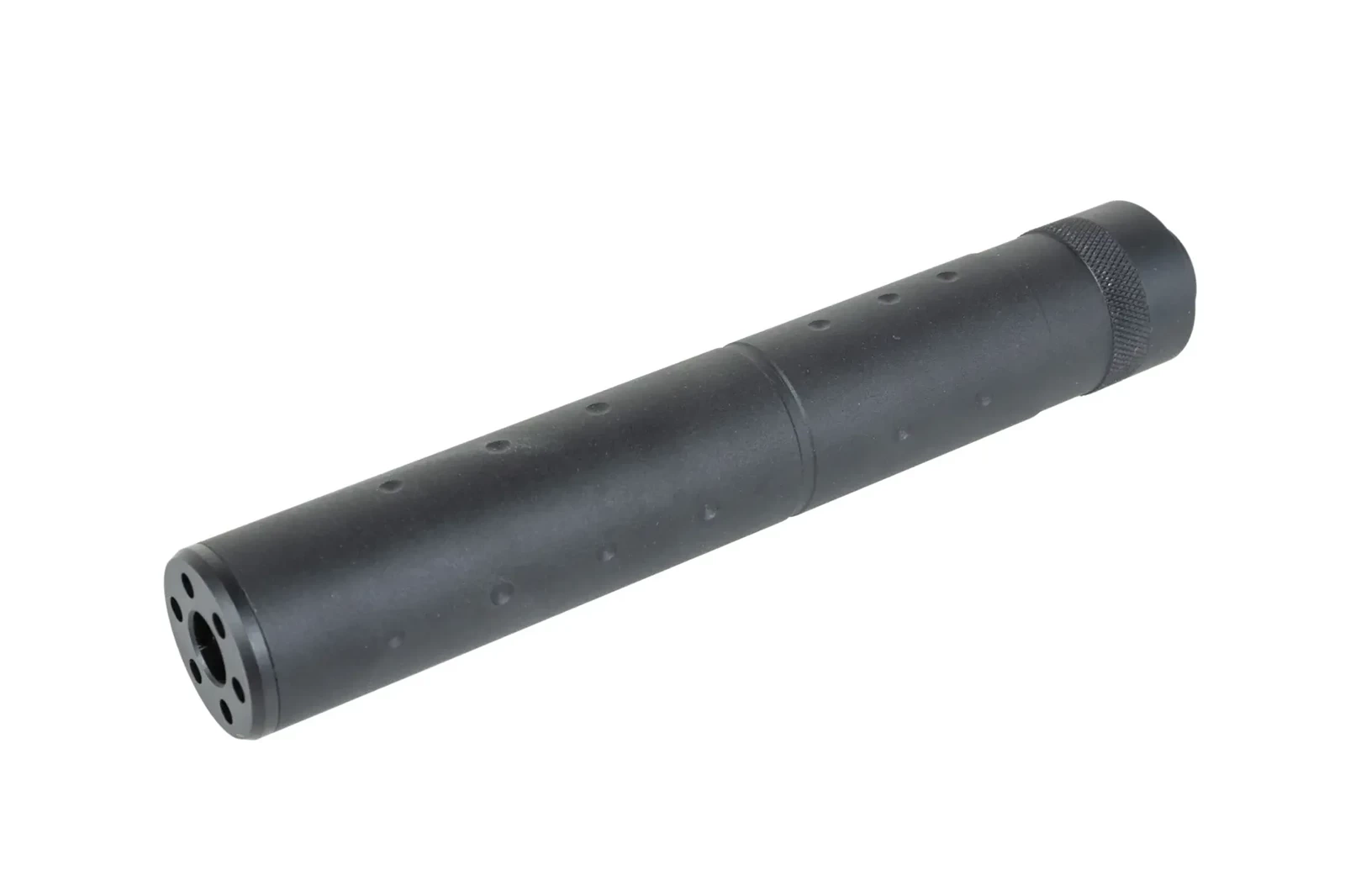 Tłumik dźwięku wykonany z wytrzymałego aluminium. Posiada gwint 14mm CCW. Wewnątrz znajdują się pianka tłumiąca. Oprócz trwałego wykonania, produkt cechuje się ciekawym wyglądem, który pozwoli wyróżnić się na polu airsoftowym.