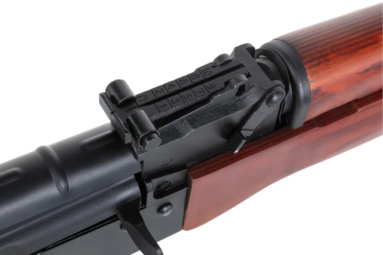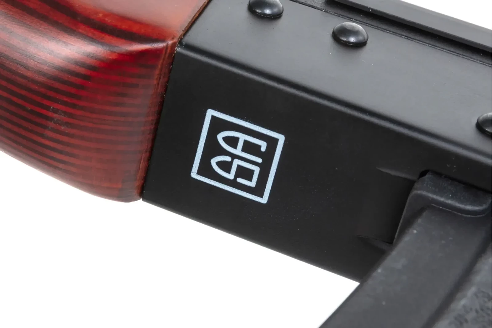 Z lakierowanego drewna wykonano stałą kolbę, łożę, osłonę rury gazowej. Natomiast z polimerowego tworzywa wykonano chwyt pistoletowy i magazynek - jak w palnym oryginale.