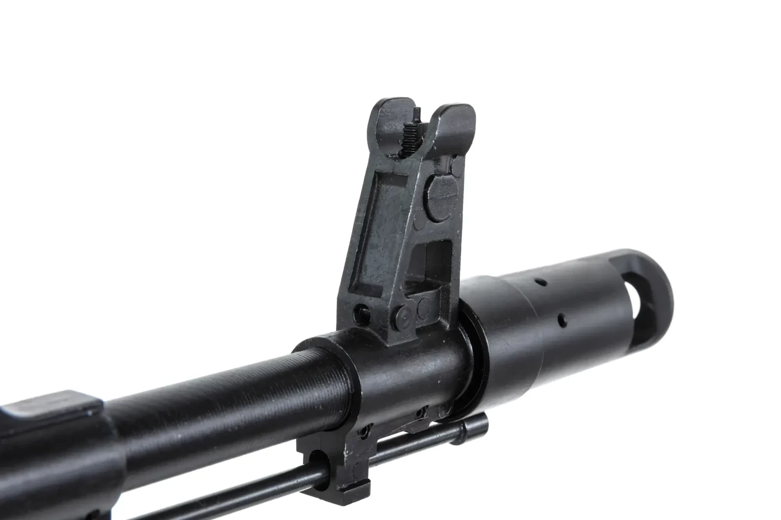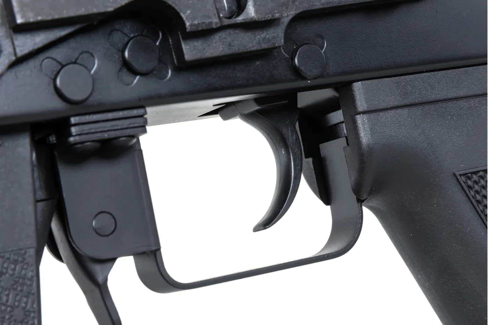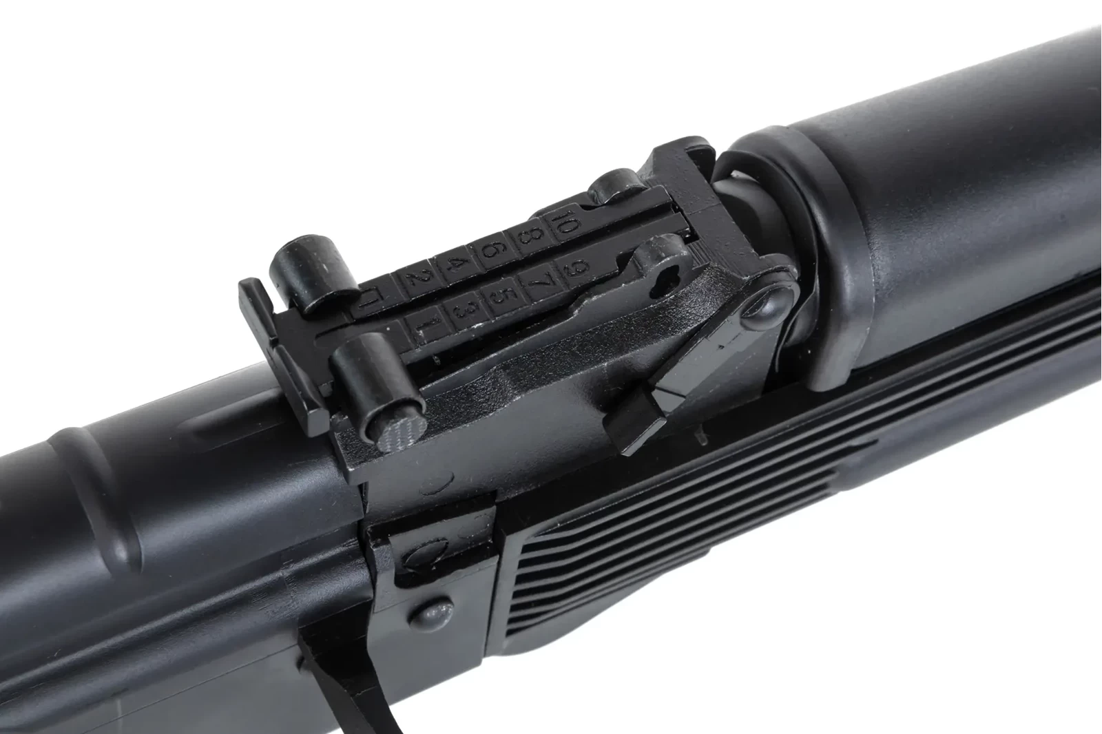 Z wytrzymałego tworzywa wykonano: chwyt pistoletowy, magazynek, taktyczną kolbę, łoże oraz osłonę rury gazowej