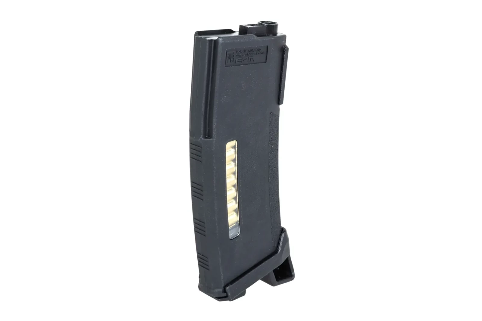 Model wykonany przy wykorzystaniu DUPONT® ZYTEL - niezwykle wytrzymałego polimeru, który gwarantuje zwiększoną wytrzymałość oraz trwałość produktu. Magazynek został wyposażony w pomarańczowy popychacz, który po maksymalnym zapełnieniu magazynka, pojawi się w oknie inspekcyjnym (W oknie widać atrapy nabojów 5.56mm, co zwiększy wrażenia użytkowe). Wytrzymały korpus posiada chropowatą, ergonomiczną powierzchnie, która ułatwi obsługę magazynka nawet podczas najcięższych walk czy w ekstremalnych warunkach. Dołączona do produktu powiększona stopka ułatwi wyciąganie z ładownic/gniazda, a jednocześnie pozwoli wygodnie oprzeć magazynek podczas leżenia na ziemi lub w trakcie ostrzału przy krawędzi np. okna.