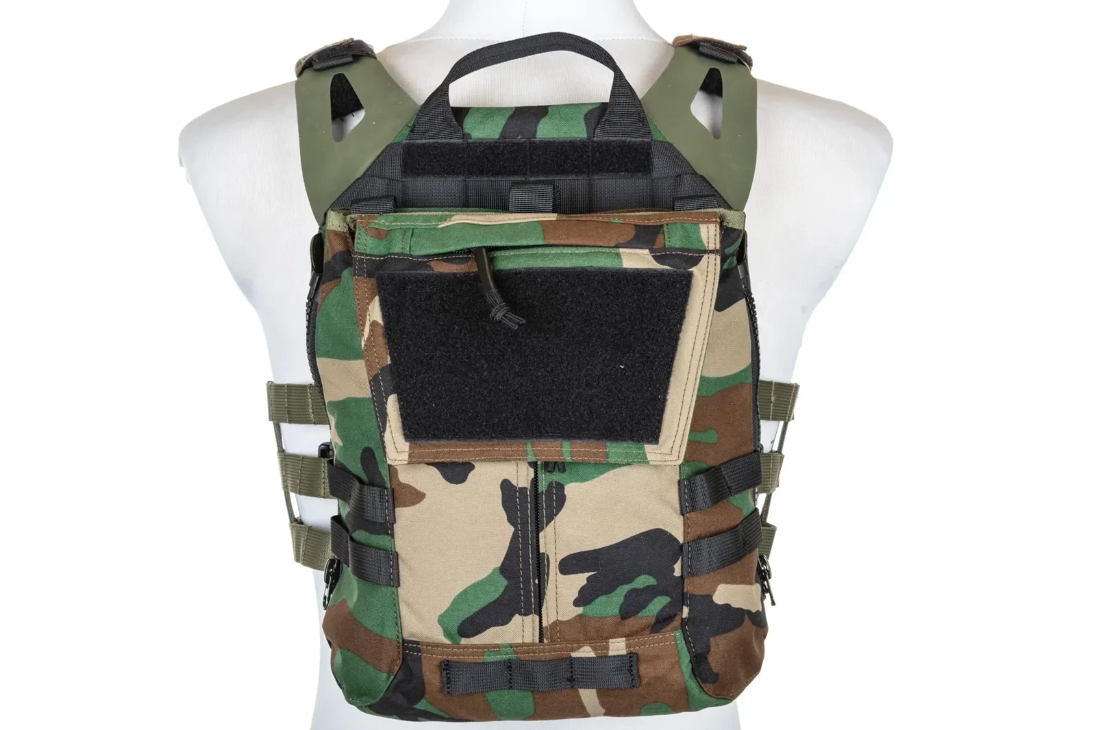 Kamizelka taktyczna Specna Arms Tactical typu Plate Carrier z panelem szturmowym Woodland