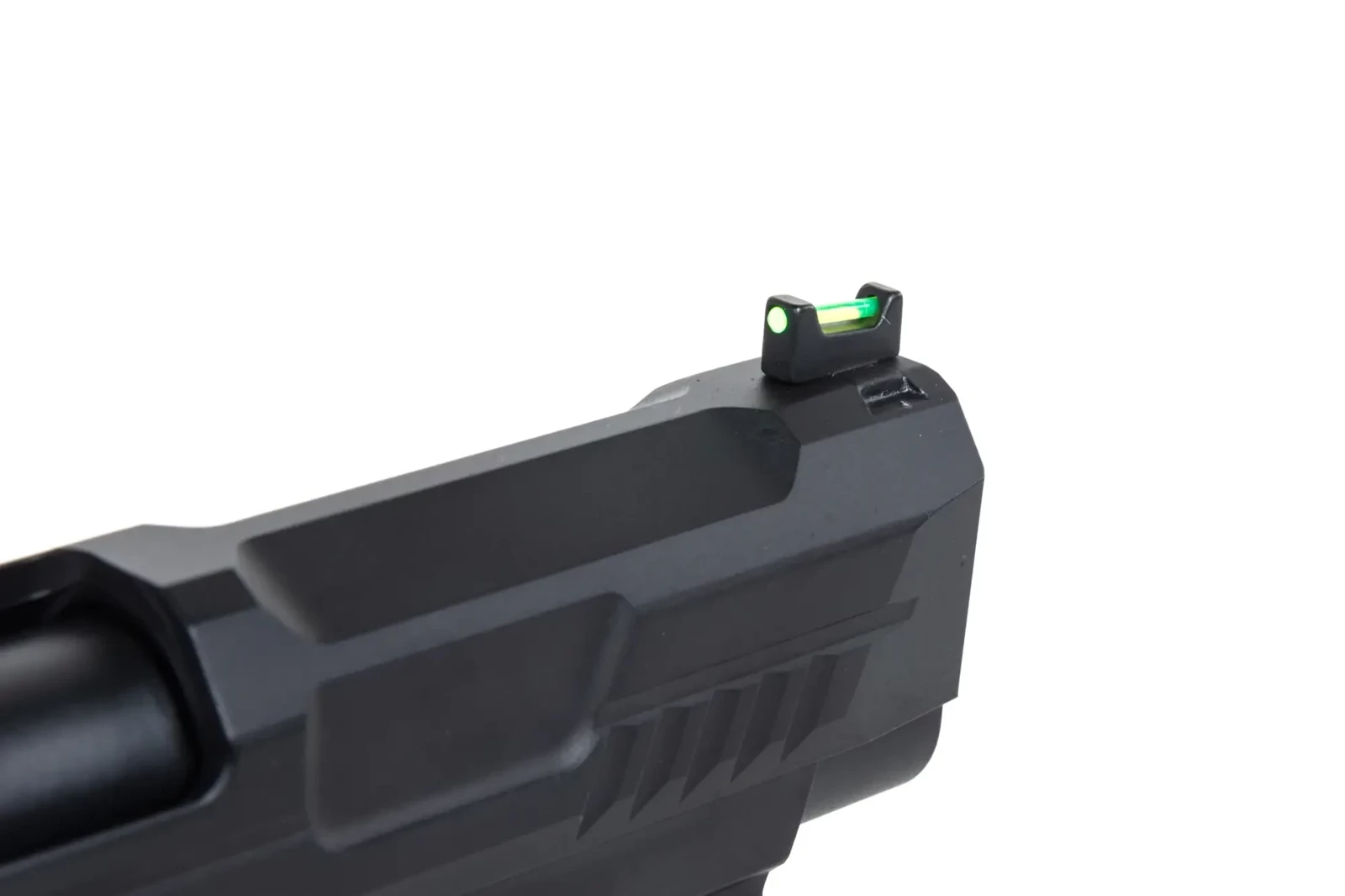 Replika posiada metalowy zamek (wykonany przy wykorzystaniu urządzeń CNC), na którym umieszczono światłowodowe przyrządy celownicze - z prostą i szybką regulacją góra-dół oraz prawo-lewo. Pod lufą znajdziemy szynę RIS, która umożliwi mocowanie latarki lub lasera.