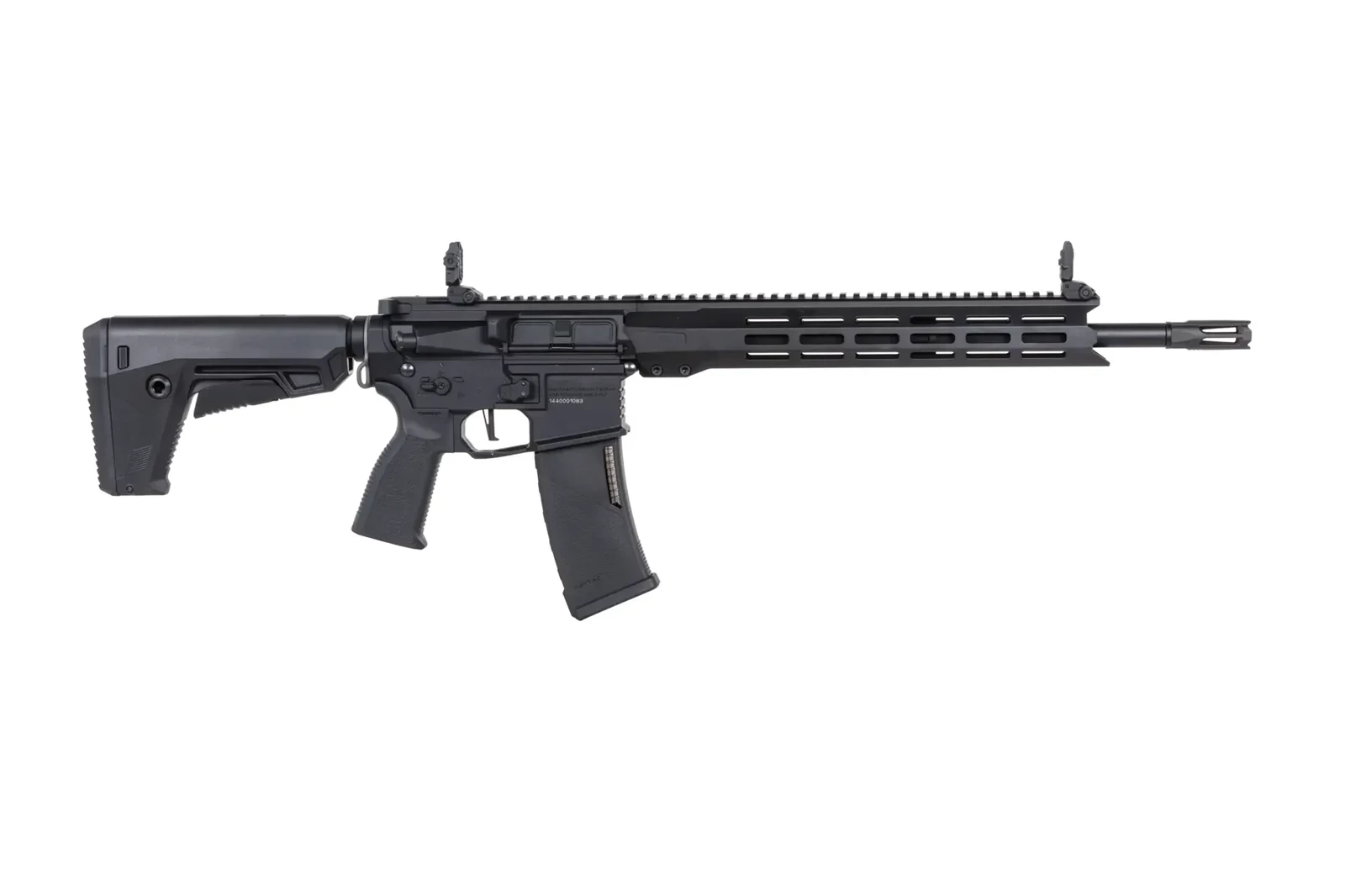 które jest kompatybilne zarówno z systemem M-LOK jak i RIS (łoże posiada grzbietową szynę RIS). Umożliwi to mocowanie szeregu dodatkowych akcesoriów takich jak chwyty pionowe, latarki, kolimatory itp. Korpus repliki posiada ergonomiczne manipulatory - obustronny selektor ognia (ukłon w kierunku leworęcznych użytkowników), powiększony zwalniacz magazynka (również obustronny) oraz zwalniacz bolt-catch, który posiada chropowatą powierzchnie.
