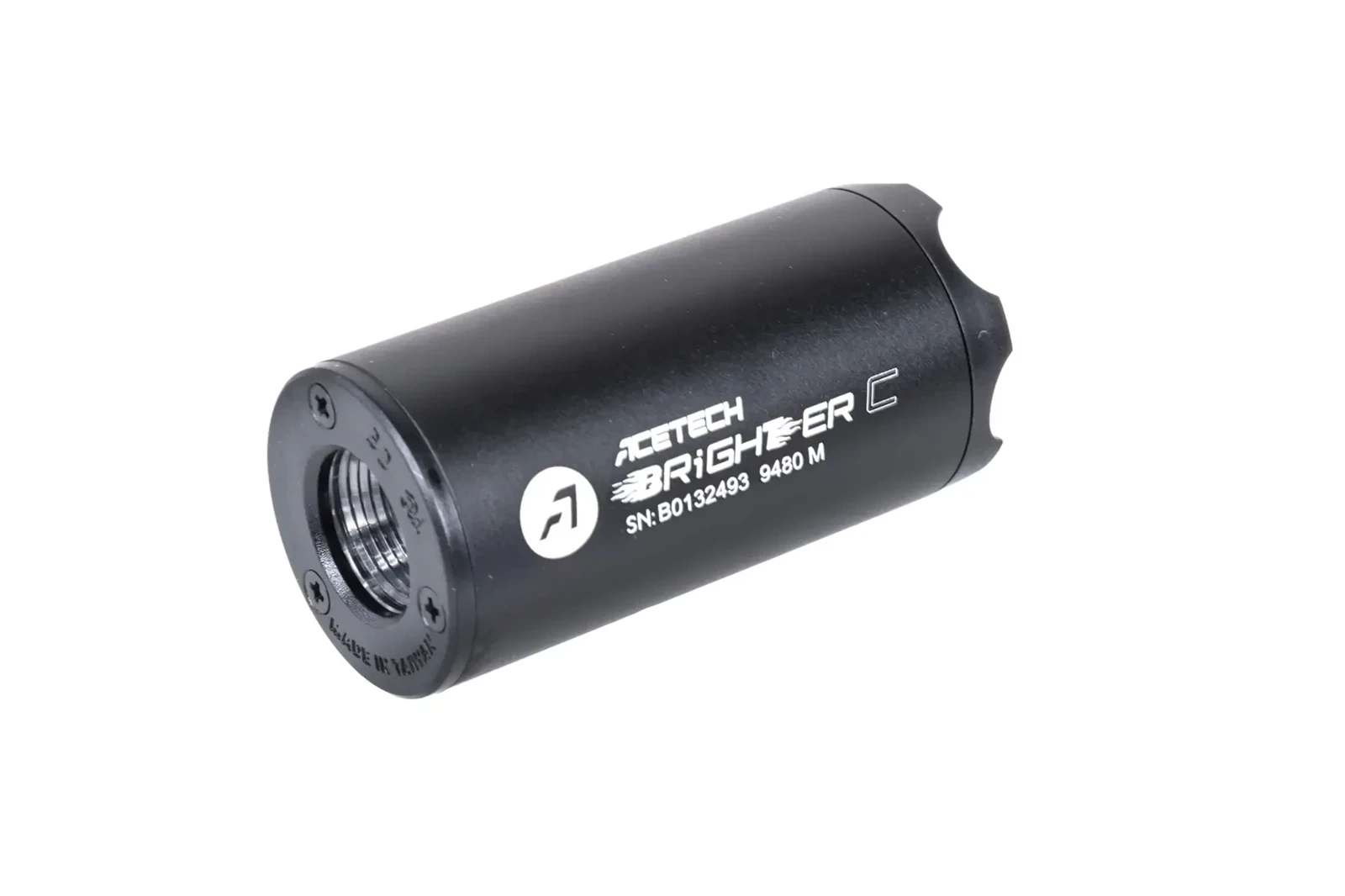 Tracer od producenta Acetech został wykonany przy wykorzystaniu m.in wytrzymałego tworzywa sztucznego oraz aluminium. Doskonale nada się do podświetlania kulek airsoftowych typu tracer w kolorze zielonym oraz gel BB.  Zasilany jest wbudowanym akumulatorem typu Li-Ion, który potrzebuje zaledwie 2.5 h ładowania, aby móc oświetlić 20 tysięcy strzałów. Co więcej tłumik może naświetlić maksymalnie 35 kulek/sekundę. Produkt posiada gwint 14mm CCW, jednak w zestawie odnajdziemy adapter 11mm CW, co pozwoli na montaż do krótkich replik.