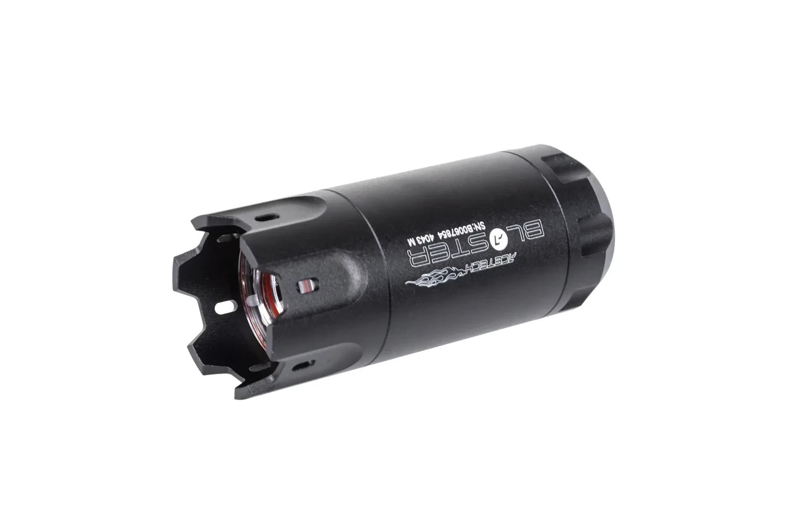 BTU czyli Blaster Tracer Unit to kolejny już model tłumika od tajwańskiej marki Acetech, która wciąż rozwija swoją ofertę urządzeń do naświetlania kulek. Tłumik Blaster nie tylko skutecznie naświetla kulki tracer w kolorze zielonym, imitując wrażenie pocisku smugowego, ale dodatkowo posiada trzy mocne diody LED, które przy każdym strzale symulują efekt płomienia wylotowego.