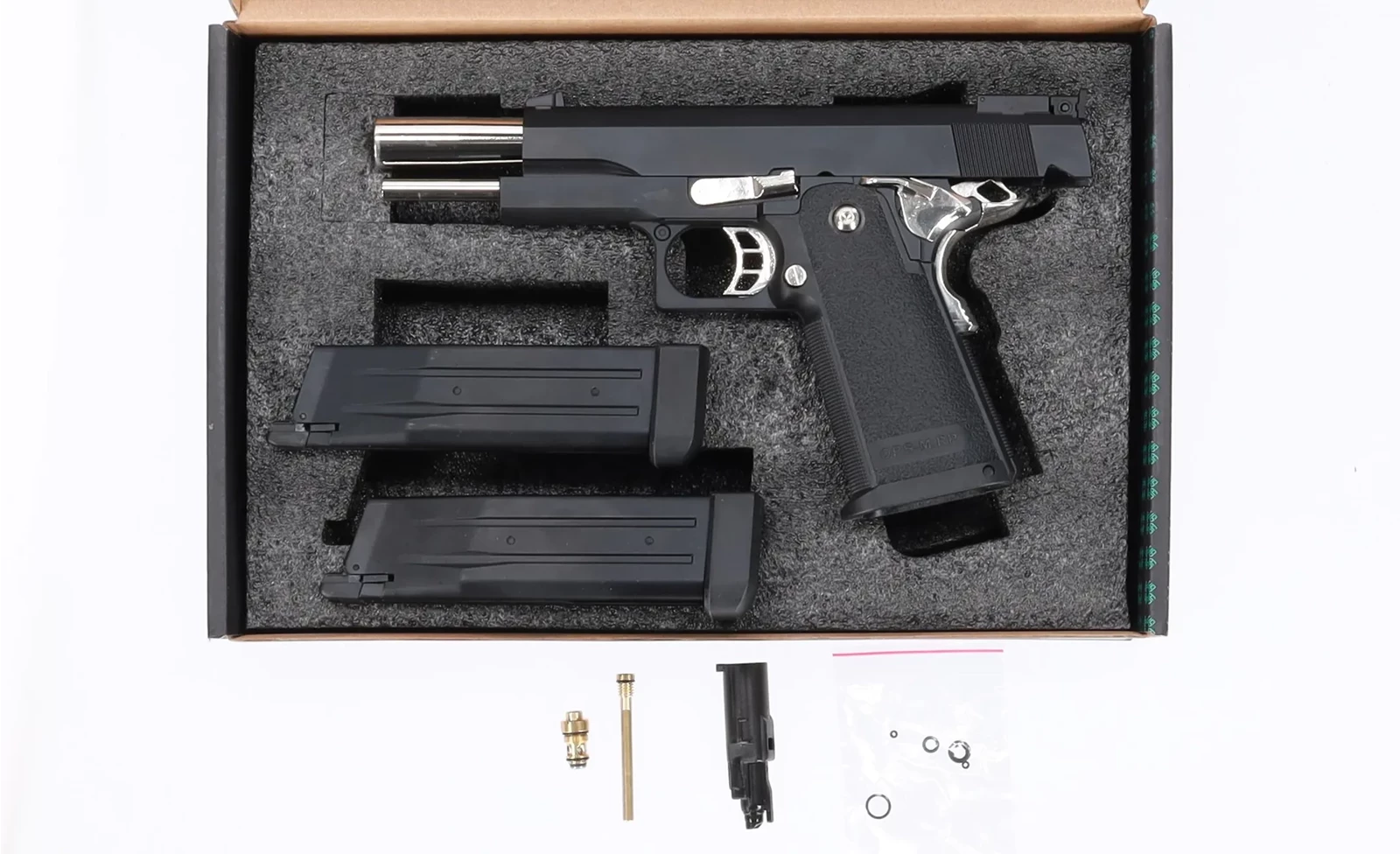 Model posiada metalowy zamek, na którym znajdują się nacięcia ułatwiające przeładowanie. Szczerbinka posiada prostą, aczkolwiek skuteczną regulację góra-dół, prawo-lewo.