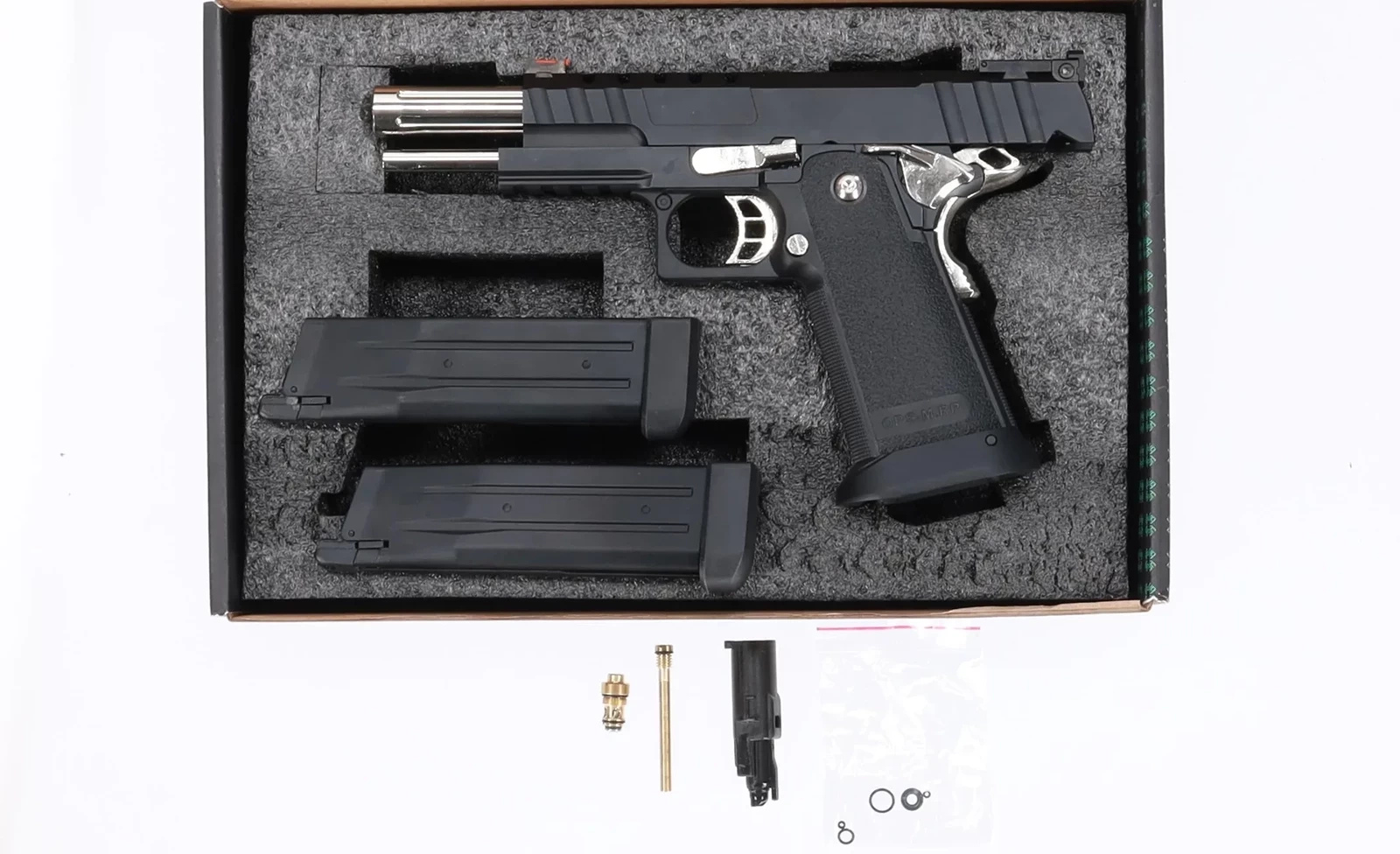 Model wyposażony został w światłowodową muszkę oraz szczerbinkę, która posiada prostą regulację góra-dół, prawo-lewo. W celu uzyskania przewagi nad przeciwnikiem, pod lufą znajduje się szyna pozwalająca zamocować laser lub latarkę a na zamku znajdują się żebrowania, które ułatwią przeładowanie. Zostając przy zamku, należy zwrócić uwagę na wycięcia na nim - daje to niesamowity i niepowtarzalny efekt, który nie dość, że powoduje, iż zamek jest nieco lżejszy, to w dodatku, a może przede wszystkim, sprawia, że wizerunkowo wygląda on bardzo atrakcyjnie i nietuzinkowo , gdyż widoczna przez wycięcia lufa jest srebrna - oddaje ona w ten sposób pistoletowi jego agresywny i ciekawy charakter.