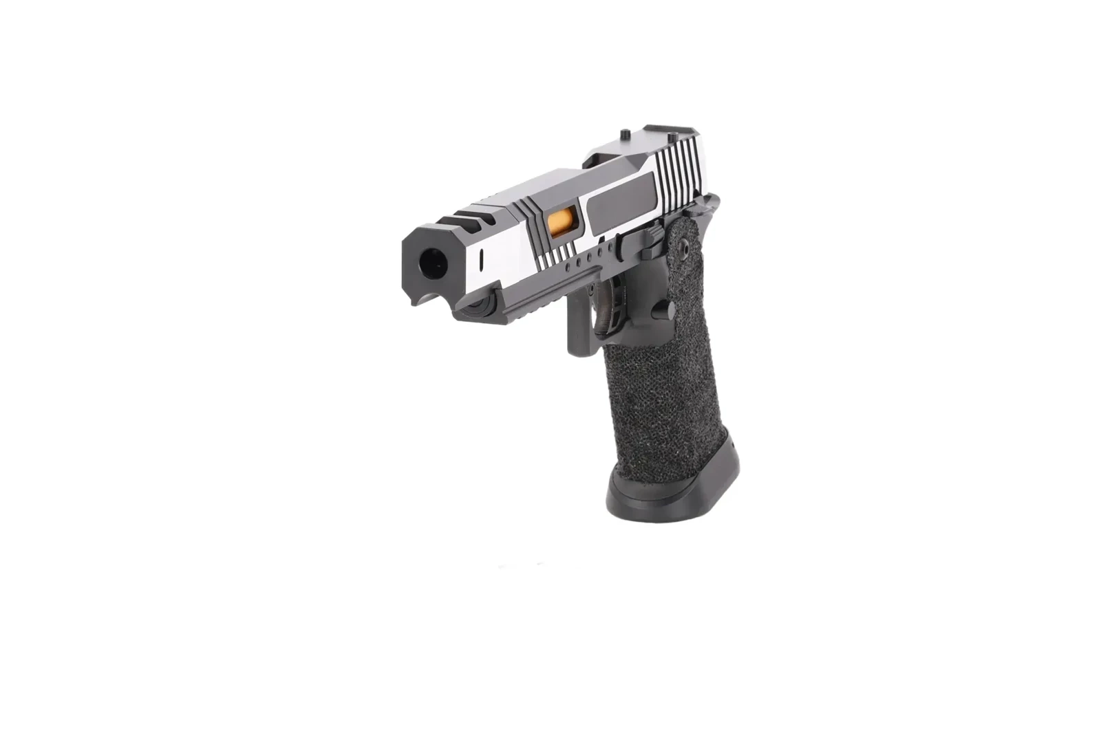 Pistolet SA-VGP20 VAPOR™ od producenta Specna Arms to pistolet zasilany green gasem, który został zaprojektowany zarówno dla początkujących jak i bardziej doświadczonych graczy, którzy oczekują wysokiej jakości wykonania i kultury pracy, dobrej ergonomii - wszystkiego, co pozwoli zdominować airsoftowe pole podczas rozgrywek CQB. Wykonany został przede wszystkim z metalu (ze stali wykonano język spustowy oraz kurek), z tworzywa wykonano jedynie okładziny na rękojeści i kabłąk.