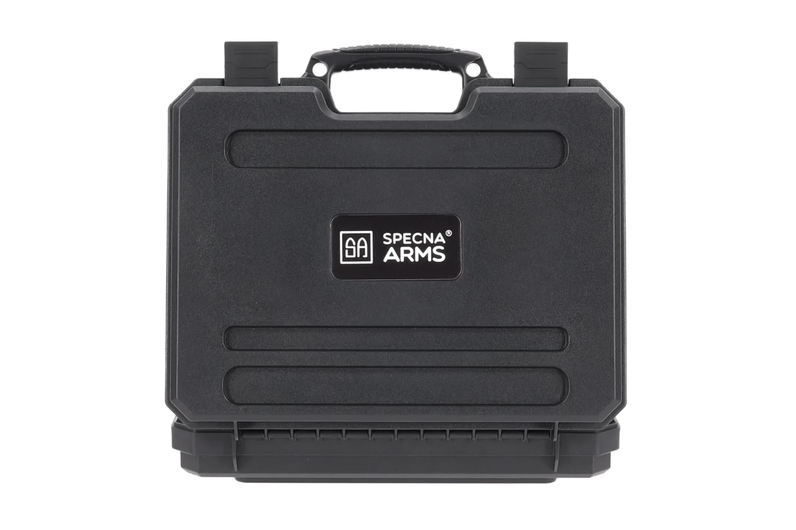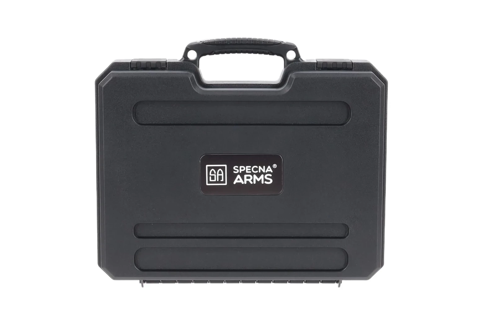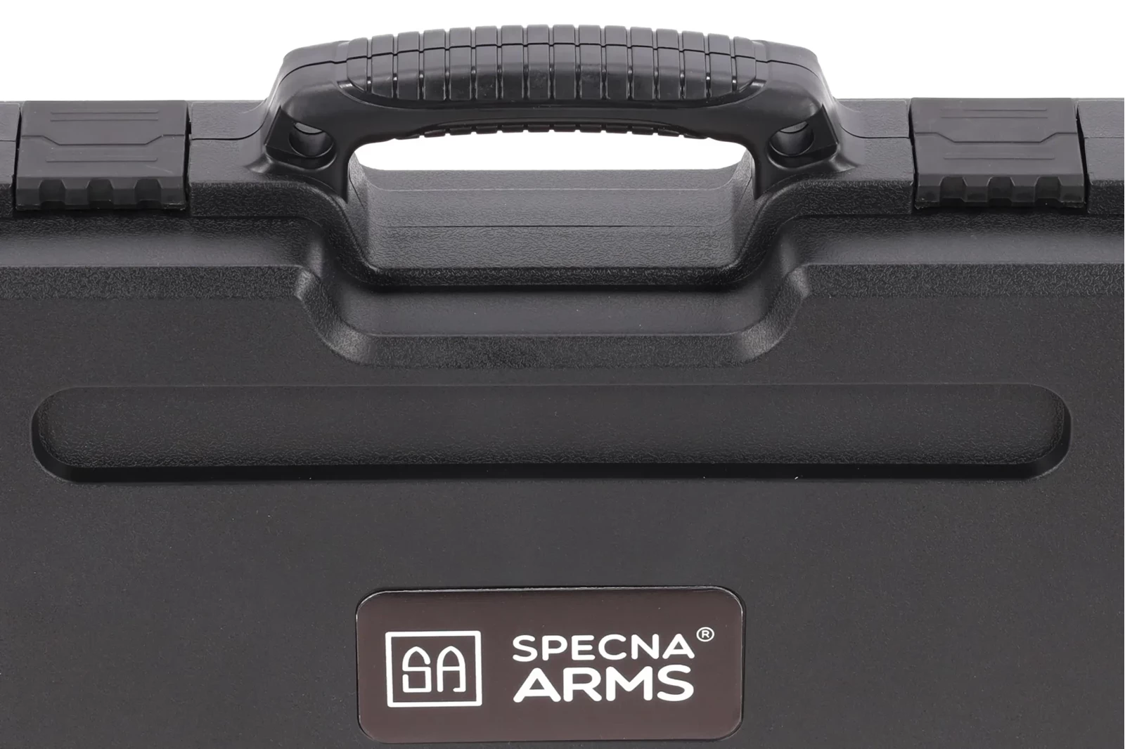 Walizka posiada wygodny chwyt transportowy a front jest ozdobiony logiem marki Specna Arms.