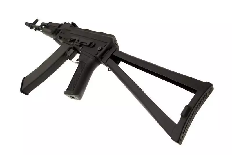 Składana kolba pozwala na swobodne operowanie repliką w terenie zielonym jak i zurbanizowanym.