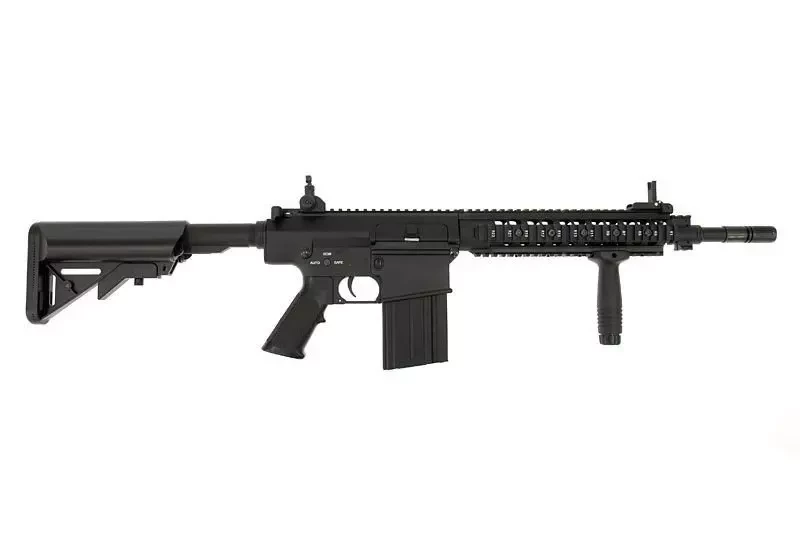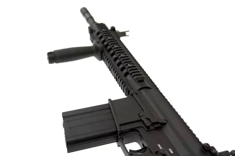 Replika karabinu SR25 została wykonana z metalu i wysokiej jakości tworzywa sztucznego. Z tworzywa wykonano profilowany chwyt pistoletowy oraz kolbę, jak również przedni chwyt taktyczny i okładziny szyn RIS. Szyny RIS, korpus oraz lufa zostały wykonane z metalu.