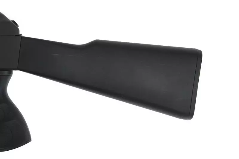 Z tworzywa zostały wykonane takie elementy jak profilowana rękojeść, rączka taktyczna, kolba, chwyt przedni oraz magazynek.