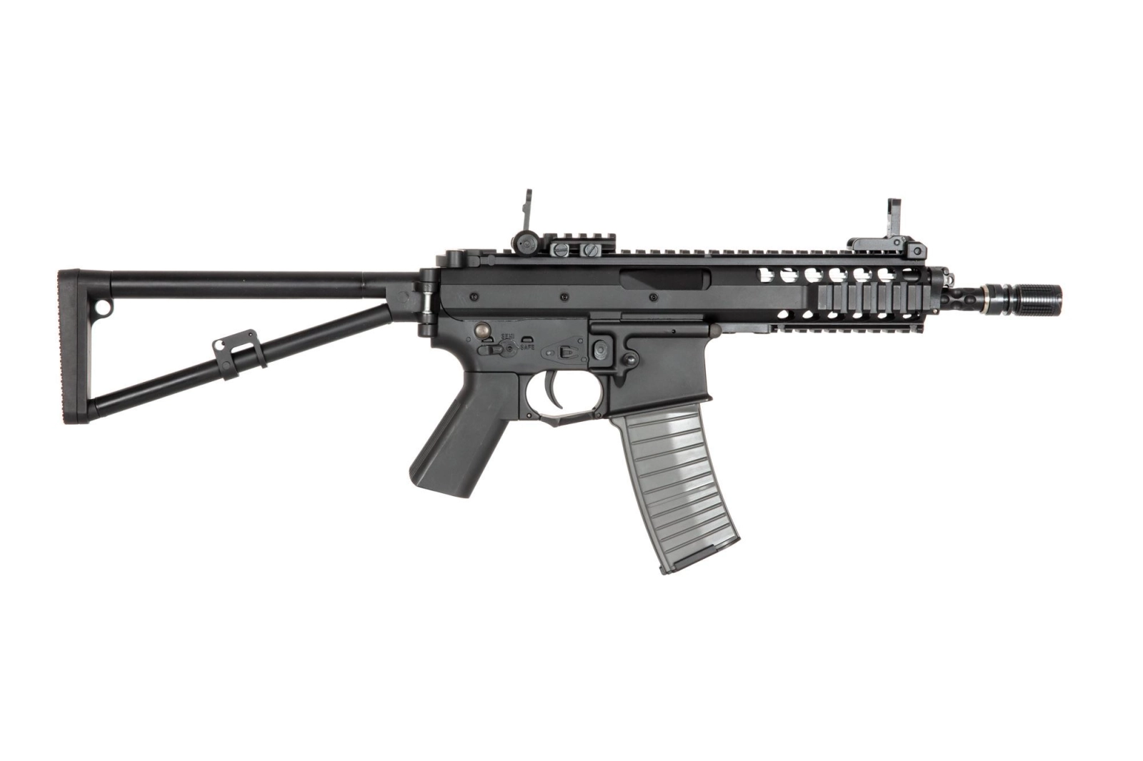 Elementami charakteryzującymi ten model na tle innych replik PDW (Personal Defense Weapon - karabinki/ pistolety maszynowe w najkrótszych i najlżejszych wersjach przeznaczone dla załóg helikopterów, czołgów, kierowców jako broń do obrony, mogąca strzelać także w trybie AUTO), są wymiary, waga a przede wszystkim uniwersalność dla operatorów lewo jak i praworęcznych. Replika posiada obustronny selektor ognia, dzięki któremu można bez problemu przełączać tryb strzelania kciukiem lub palcem wskazującym dowolnej ręki, a także tzw. "multi magazine catch" - obustronny zwalniacz magazynka. Na korpusie znajduje się także zamontowany już montaż pod zaczep zawieszenia typu "push the button".