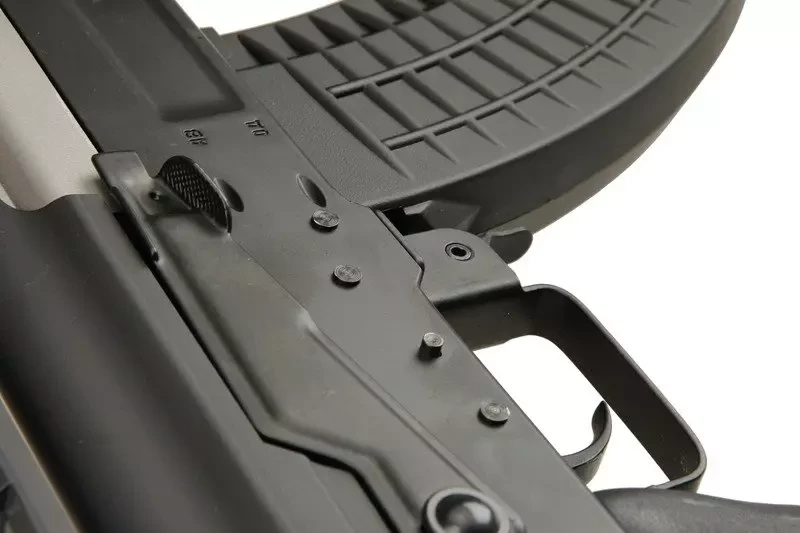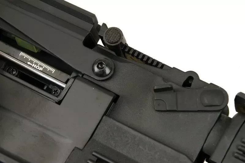 Za napęd służy gearbox v.3 z zestawem wzmocnionych stalowych zębatek osadzonych na stalowych łożyskach ślizgowych. Zastosowano tu również kierunkową głowicę tłoka, mocniejszą sprężynę i aluminiową tuleję w tłoku.
