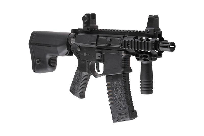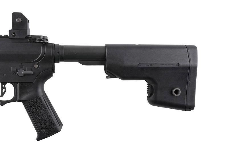 Korpus repliki został wykonany ze wzmacnianego nylonu. Jakość użytych materiałów sprawia, iż na pierwszy rzut oka ciężko rozpoznać, że jest to tworzywo sztuczne a nie metal. Na korpusie zostały umieszczone efektownie wyglądające oznaczenia, m.in. modelu, kalibru, a także logo Amoeba Airsoft. Metalu użyto do produkcji górnej szyny RIS, lufy zewnętrznej, tłumika płomienia, prowadnicy kolby oraz drobnych elementów. Chwyt pistoletowy jest odpowiednio profilowany, pokryty chropowatą, antypoślizgową fakturą, która zwiększa pewność chwytu i wygodę. Przycisk zwalniacza magazynka został powiększony, aby ułatwić jego obsługę.