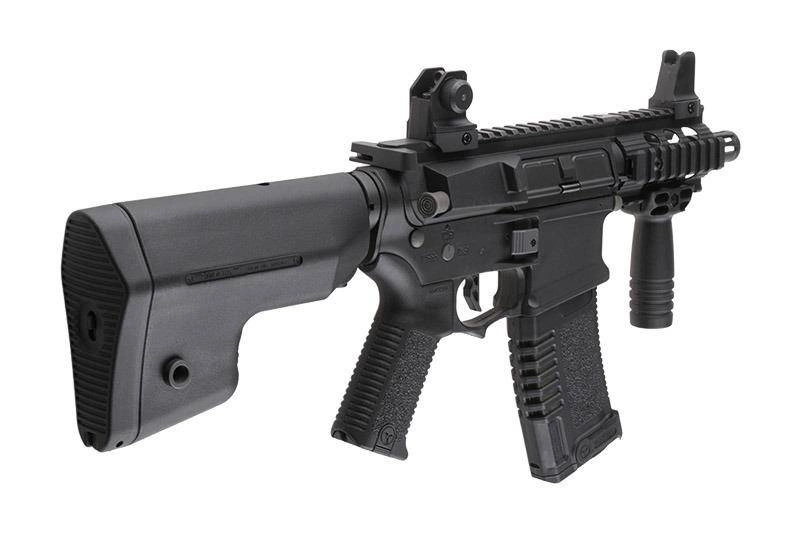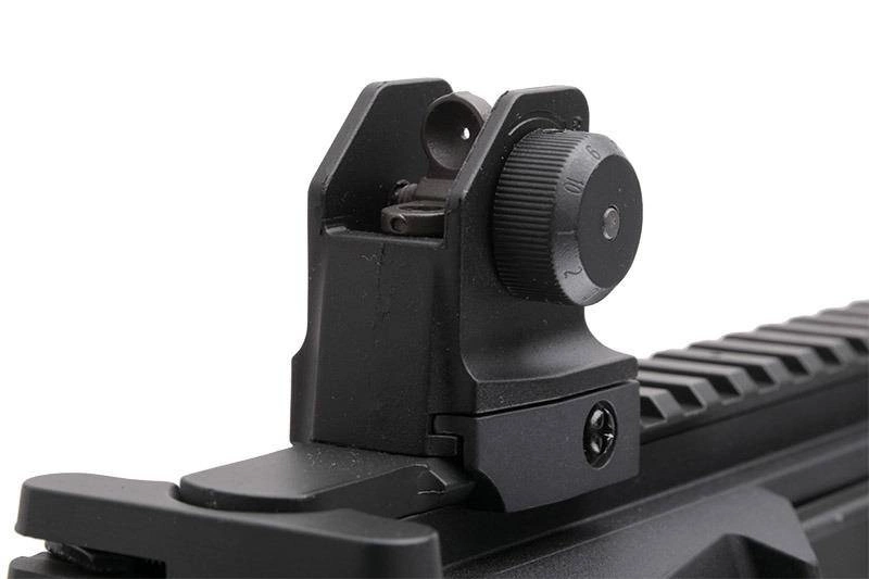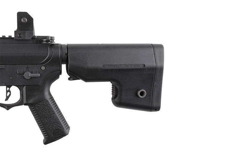 Replika została wyposażona w teleskopową, regulowaną kolbę, która umożliwia dopasowanie długości do budowy i preferencji strzelca. Akumulator możemy zmieścić wewnątrz kolby i prowadnicy. Kolba posiada obustronne gniazdo do mocowania uchwytów zawieszenia taktycznego typu QD. Dostęp do regulacji systemu hop-up uzyskuje się standardowo dla tego typu konstrukcji - odciągając rączkę przeładowania i odsłaniając okno wyrzutnika łusek.