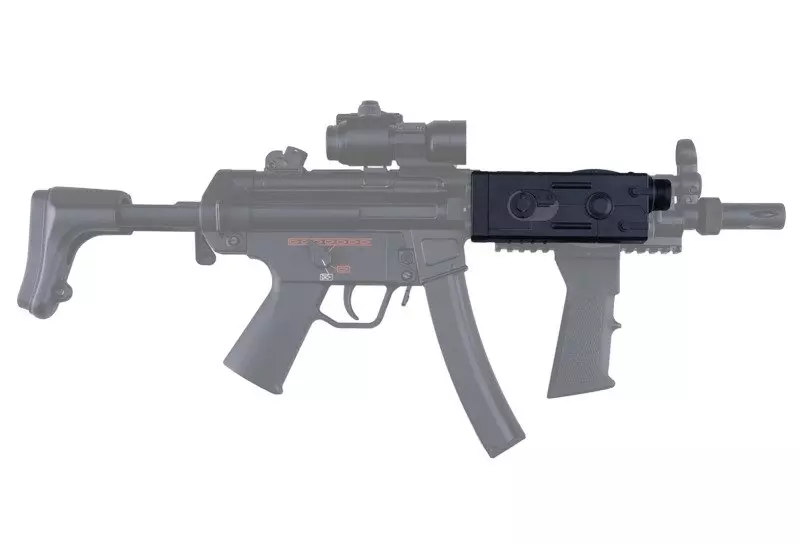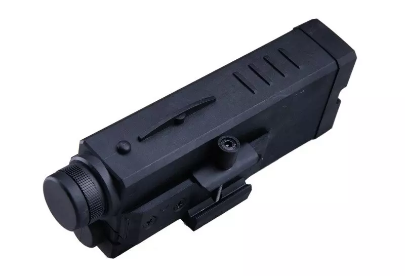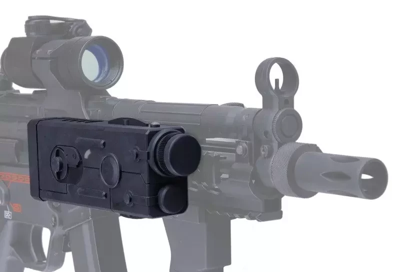 Pojemnik został wykonany z wysokiej jakości tworzywa, pozwala on na montaż akumulatora o wymiarach 130x49x25 mm. Jest to idealne rozwiązanie dla użytkowników replik z ograniczonym miejscem na akumulator posiadających szynę RIS 22 mm. Kable od akumulatora możemy wyprowadzić na zewnątrz otworem znajdujących się na tylnej ściance "puszki".
