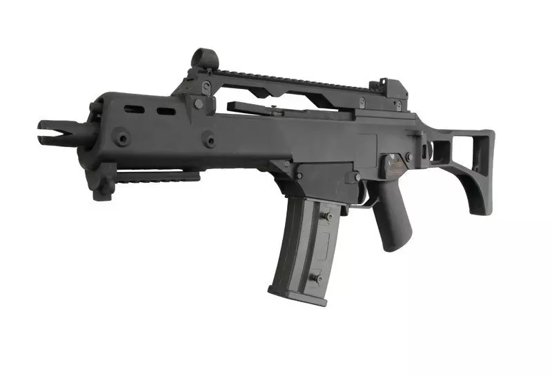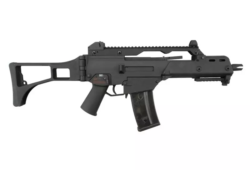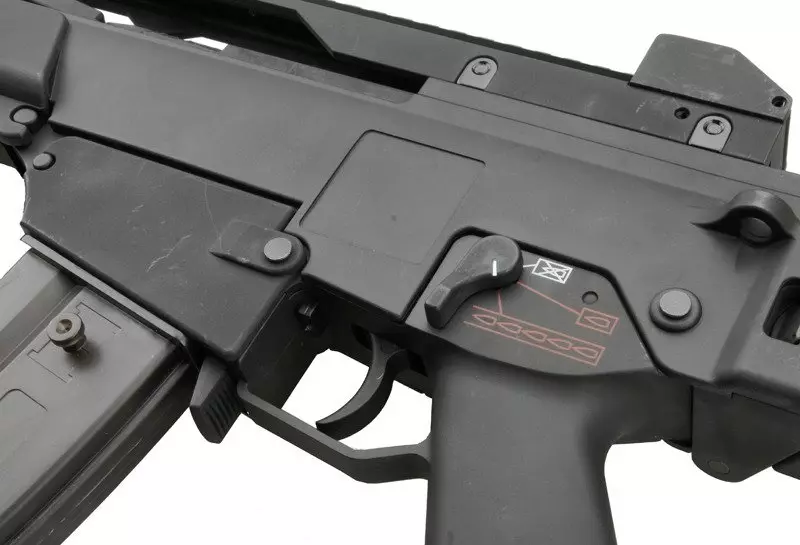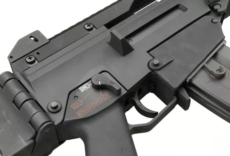 Karabinek został wyposażony w długą szynę montażową RIS 22mm na górnycm chwycie, umożliwiającą instalację różnego typu celowników optycznych. Pod chwytem przednim również znajduje się szyna. Materiał korpusu posiada antypoźlizgową, chropowata fakturę, zastosowano składaną na bok kolbę z wygodną, gumową stopką. Akumulator mieści się wewnątrz chwytu przedniego - można go szybko zdjąć po wyciągnięciu jednego pinu mocującego.
