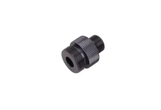 Przejściówka wykonana jest ze stali metodą obróbki CNC. Producent dedykuje ją do replik typu MB08 oraz MB10. Przejściówka umożliwia zamontowanie tłumika o gwincie lewoskrętnym 14mm do repliki o gwincie prawoskrętnym 20mm.