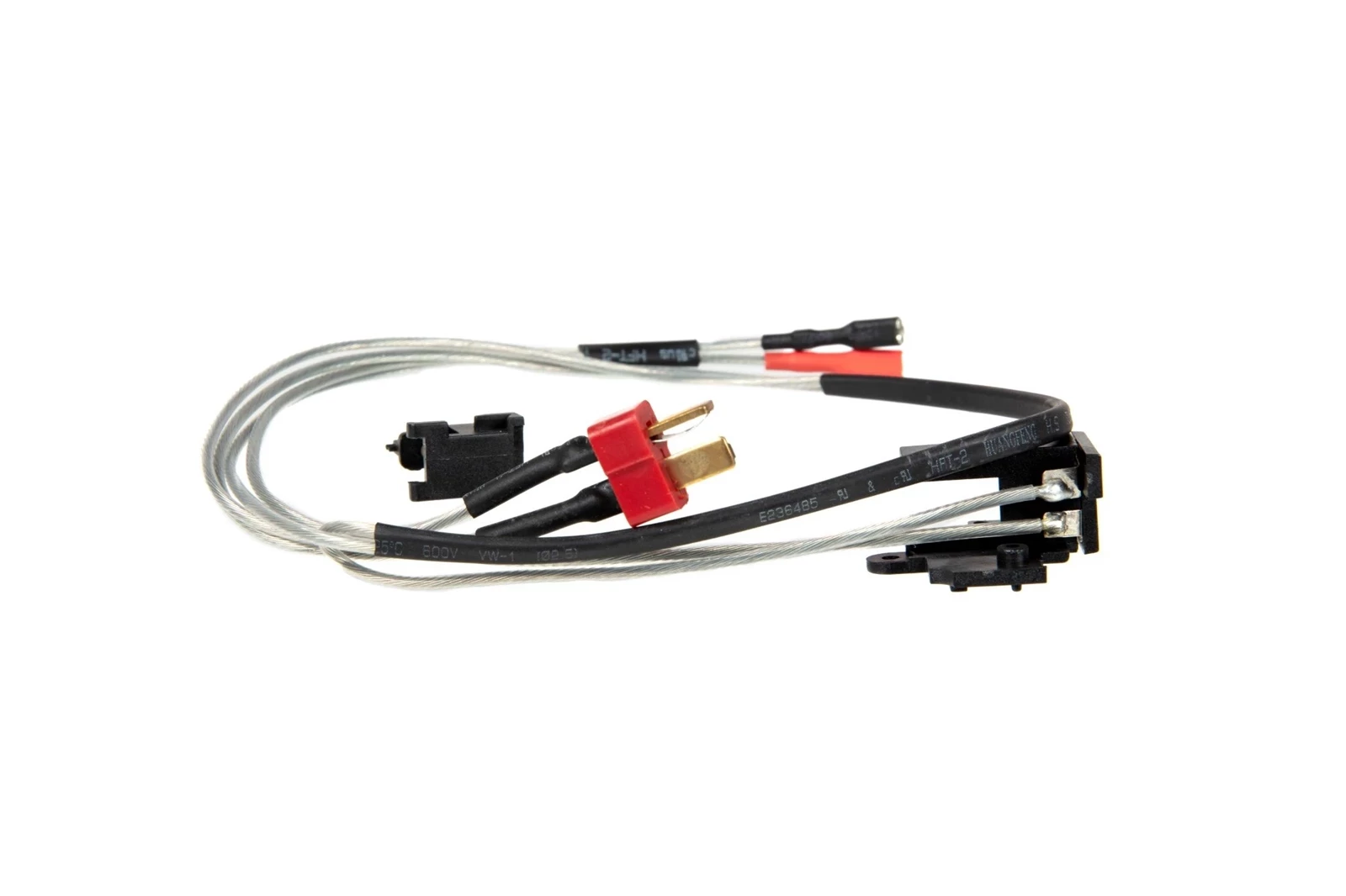 Okablowanie wraz z kostką stykową dedykowane dla replik wyposażonych w gearbox V2 z wyjściem okablowania na tył repliki. Wyposażone we wtyk typu T-connect.
