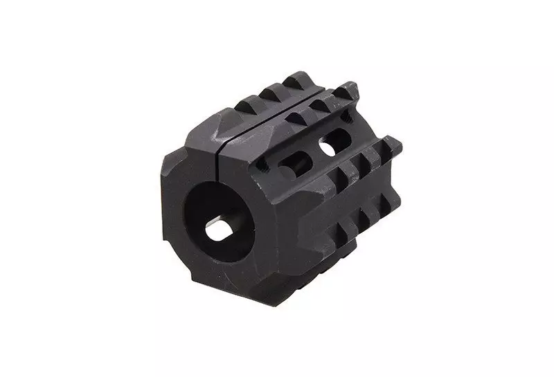 Szyna RIS montowana w miejsce muszki, wykonana z metalu w technologii CNC. Pozwala na montaż akcesoriów na czterech płaszczyznach oraz umieszczenie atrapy rury gazowej.