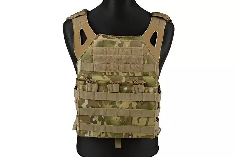 Bardzo lekka i funkcjonalna kamizelka typu plate carrier, uszyta z wytrzymałego nylonu. Zbudowana z dwóch paneli - przedniego oraz tylnego, połączonych lekkim, szkieletowym cummerbundem, który składa się jedynie z usztywnionych taśm. Nie ma problemu aby na tych taśmach zamocować dodatkowe kieszenie modułowe.