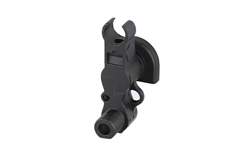 Zintegrowana podstawa muszki z blokiem gazowym produkcji JG przeznaczona do replik typu AK. Produkt posiada lewoskrętny gwint uniwersalny 14mm pozwalający na montaż urządzenia wylotowego.