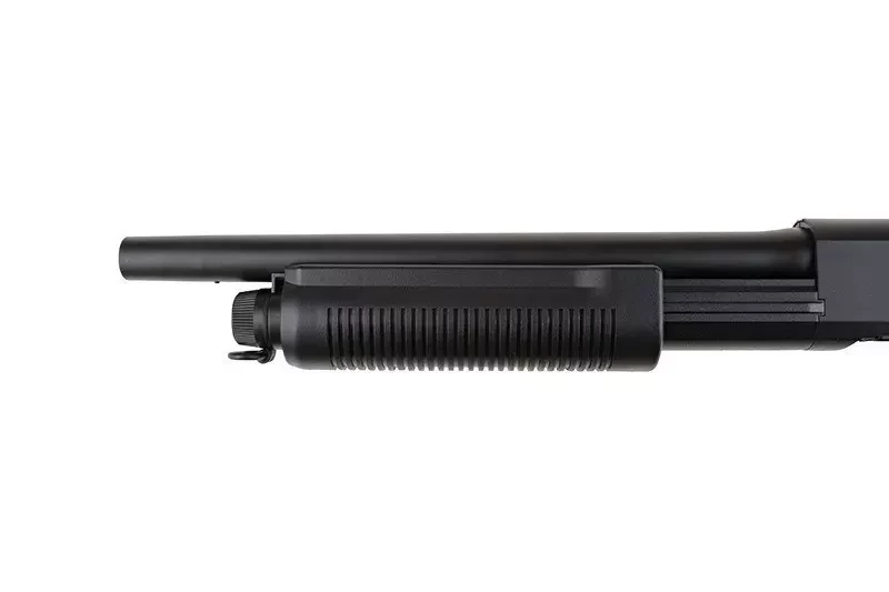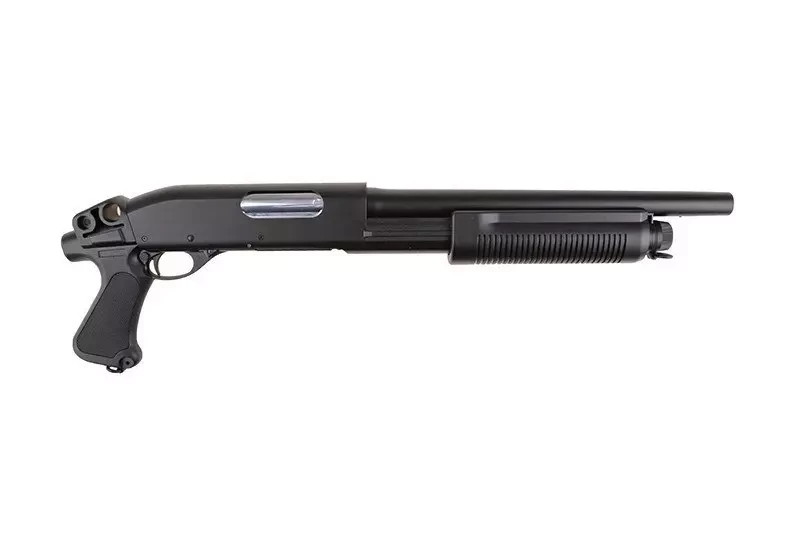 Rodzinę strzelb Cymy charakteryzują dokładnie te same cechy, co inne produkty tej znanej marki. To przede wszystkim solidna jakość wykonania i dobre osiągi w połączeniu z atrakcyjną ceną. CM351 to replika strzelby o napędzie spreżynowym, co najważniejsze - posiadająca  3 lufy wewnętrzne! Pozwala to na wystrzelenie 3 kulek jednocześnie za jednym pociągnięciem spustu, a dzięki temu uzyskanie zdecydowane przewagi na polu walki. Szczególnie podczas airsoftowych potyczek o charakterze CQB (choć nie tylko!). 6mm amunicję ładuje się do dołączonej atrapy shellsa o pojemności 30 kulek, którego następnie umieszczamy w komorze nabojowej, co nadaje użytkowaniu repliki dodatkowego powiewu realizmu.