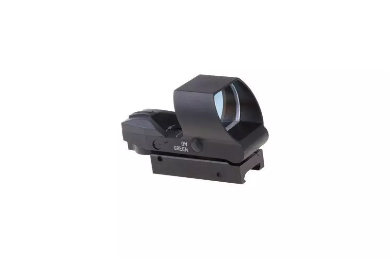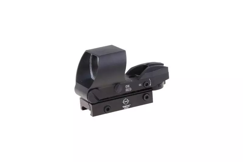 Celownik kolimatorowy Theta Optics™ Open II zasilany trzema bateriami LR44 (brak w zestawie), umożliwia użycie zielonej lub czerwonej plamki celowniczej do prowadzenia działań zarówno dziennych, jak i nocnych. Punkt celowniczy możemy płynnie wyregulować w pionie i poziomie, posiada on także kilka stopni natężenia. Użytkownik posiada możliwość wyboru pomiędzy czterema różnymi punktami celowniczymi. Montowany na standardowej szynie RIS 22mm, kolimator pozwala na błyskawiczne i precyzyjne celowanie.