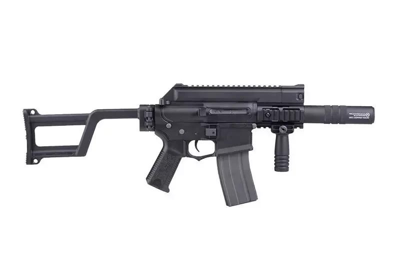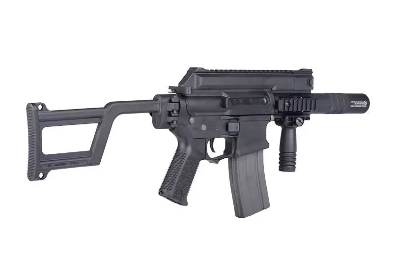 Replika została wyposażona lekką kolbę z tworzywa, składaną na bok. Akumulator mieści się w górnej części korpusu. Dostęp do regulacji systemu hop-up uzyskuje się standardowo dla tego typu konstrukcji - odciągając rączkę przeładowania i odsłaniając okno wyrzutnika łusek.