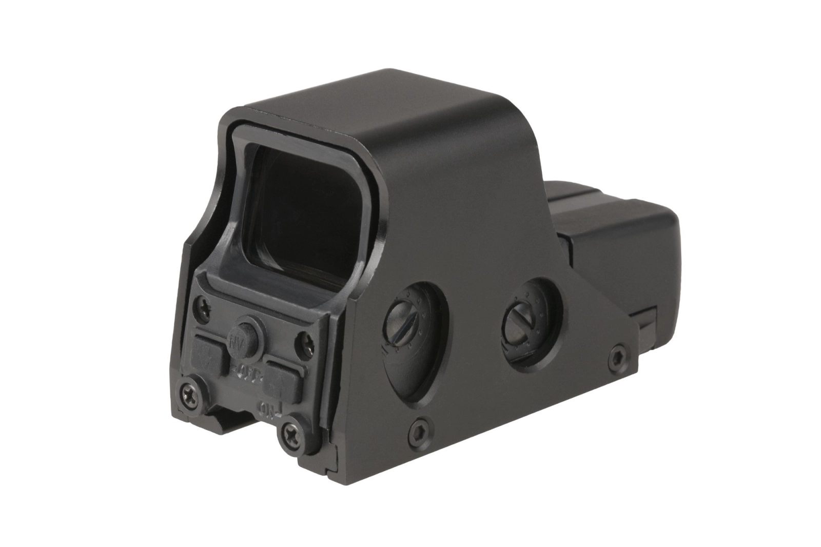 Celownik kolimatorowy Theta Optics™ TO551 zasilany czterema bateriami LR44, o konstrukcji wzorowanej na celownikach holograficznych. Umożliwia użycie zielonej lub czerwonej plamki celowniczej do prowadzenia działań zarówno dziennych, jak i nocnych. Punkt celowniczy możemy wyregulować w pionie i poziomie, posiada on także kilka stopni natężenia. Montowany na standardowej szynie RIS 22mm, kolimator pozwala na błyskawiczne i precyzyjne celowanie. Kolimator zamknięto w solidnej, metalowej obudowie.