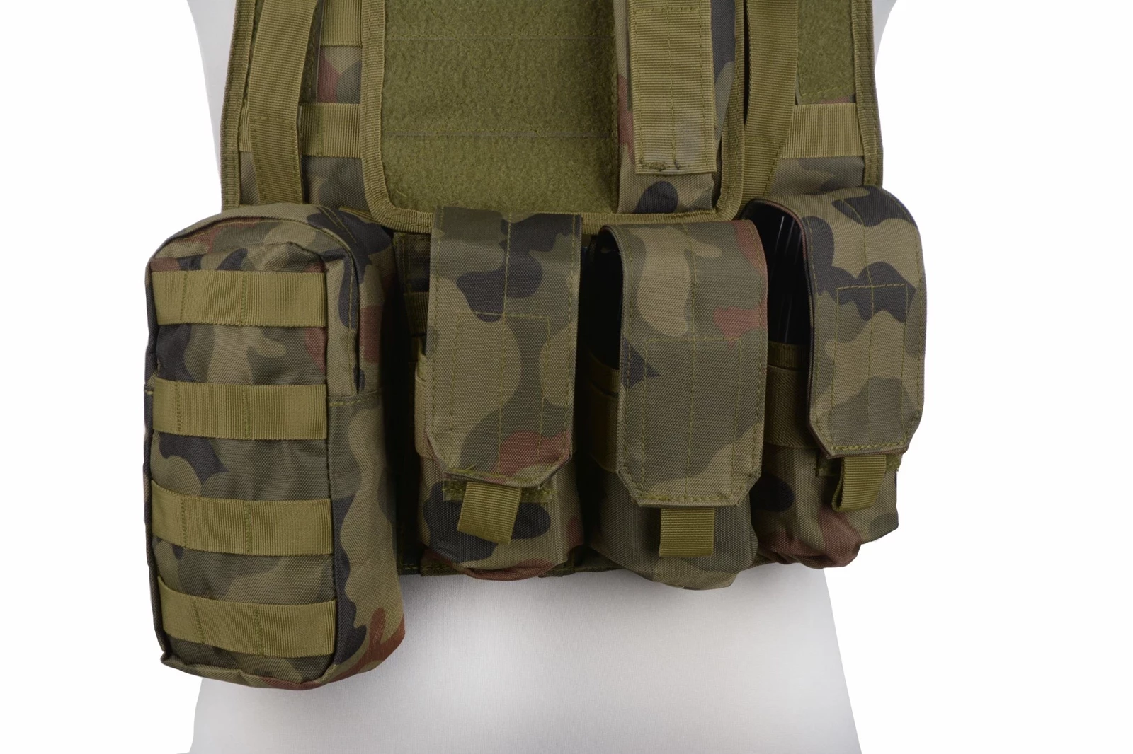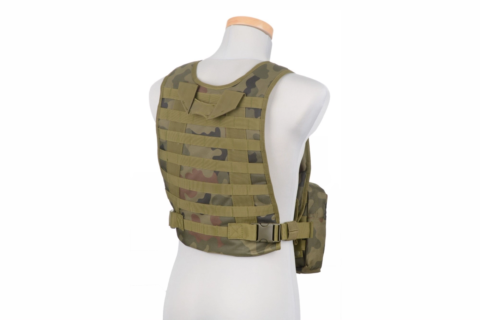 Wykonana z wytrzymałego nylonu kamizelka typu MSBS Plate Carrier. Zaopatrzona w naszyte poziome taśmy PALS na przednim i tylnym panelu. Dzięki temu, możliwe jest przyłączenie do niej dodatkowych ładownic oraz wyposażenia zgodnego z systemem MOLLE. Co więcej, oporządzenie dodatkowe przyłączone może być w dowolny, wygodny dla użytkownika sposób.
