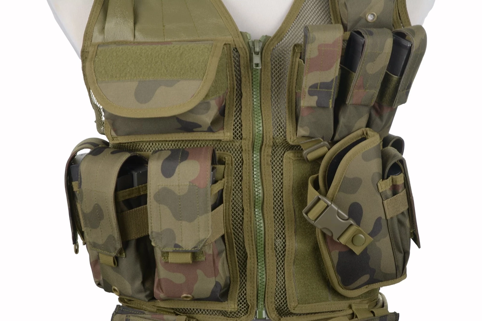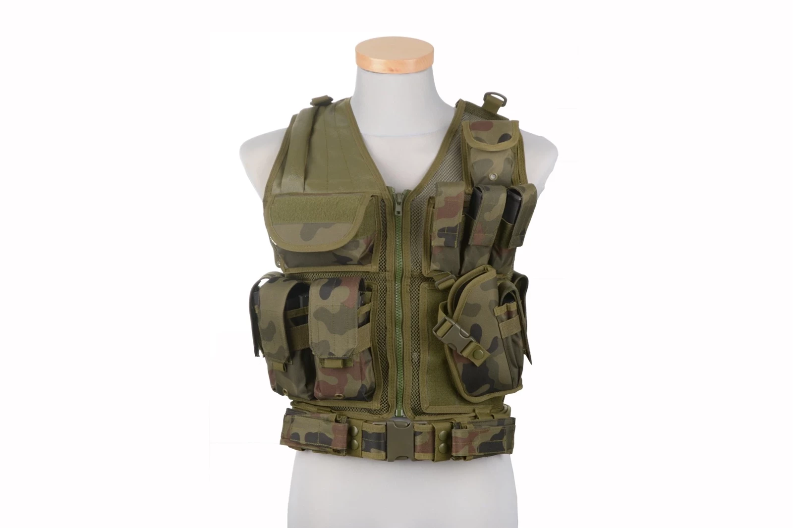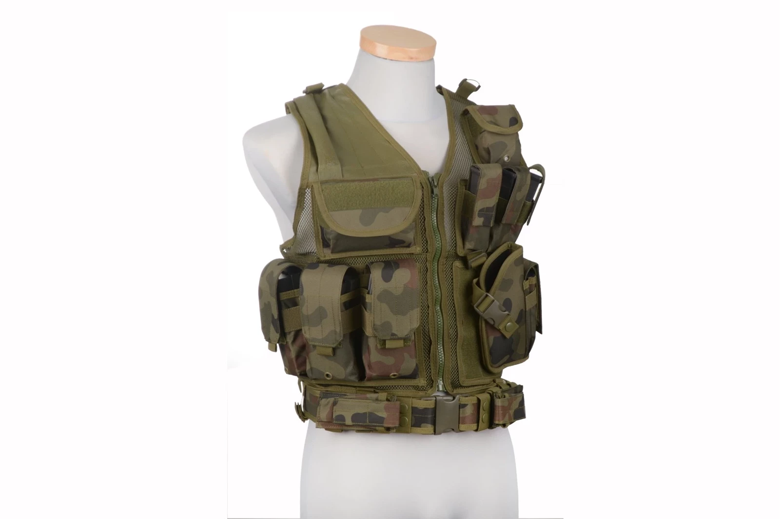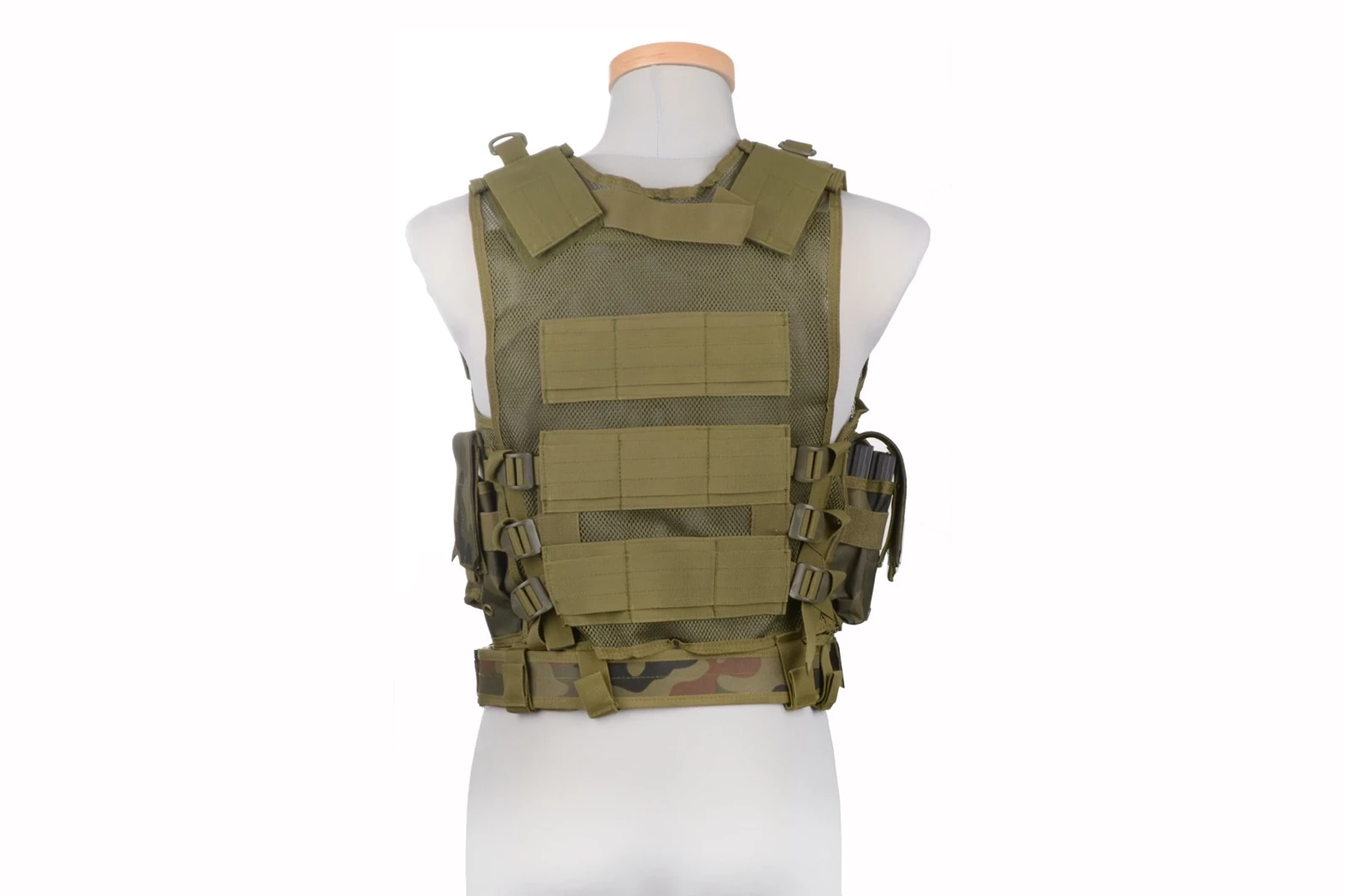 Kamizelka wykonana została na nylonowej siatce. Posiada po trzy pasy, w bocznych częściach, regulujące jej rozmiar. Na części plecowej znajdują się trzy pasy szerokości 50mm. Kamizelka dzieli się na dwie części i zapinana jest za pomocą zamka błyskawicznego. Na prawej klapie znajdują się trzy pojedyncze ładownice na magazynki w standardzie Stanag oraz podręczna kieszeń z rzepem do zamontowania naszywki.