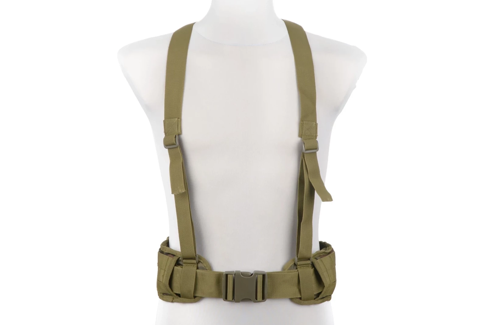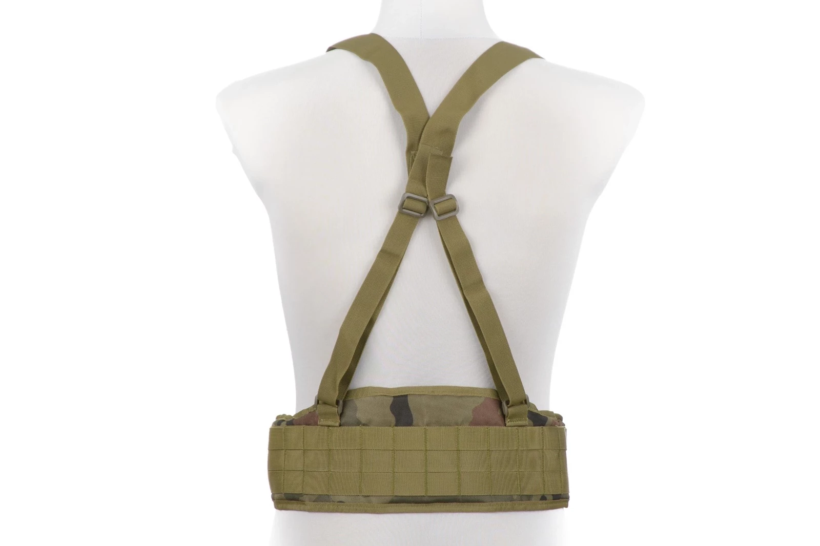 Pas posiada regulację obwodu od 820mm do 1280mm co pozwala na optymalne dopasowanie oporządzenia do budowy użytkownika. Zastosowana do usztywnienia pasa pianka, poprawia znacznie komfort użytkowania, nawet z dużym obciążeniem. Pas został wyposażony w regulowane, płaskie szelki w układzie "X".