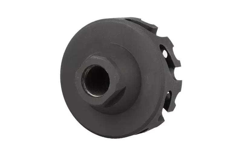 Idealnie wypełnia miejsce w którym kończy się szyna RIS. Zapewni to replice wyjątkowy i niepowtarzalny charakter. Jest ciekawą alternatywą dla standardowych tłumików płomienia.