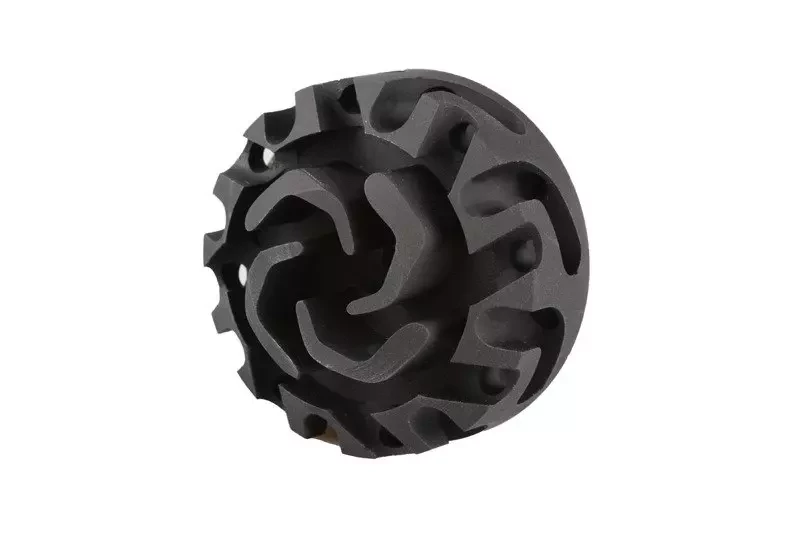 Kompensator odrzutu o unikalnym wyglądzie, w całości wykonany z metalu za pomocą maszyn CNC.