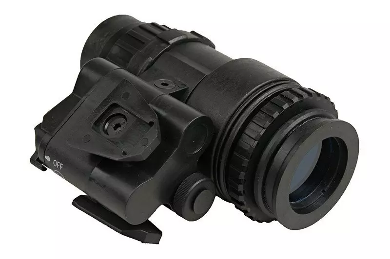 Replika monokularu noktowizyjnego AN/ PVS18. Została wykonana w skali 1:1 z wytrzymałego tworzywa sztucznego. Jest to atrapa, tzw. "wydmuszka", więc nie jest funkcjonalna i nie posiada właściwości noktowizyjnych. Po zastosowaniu odpowiedniego montażu można ją zamocować na szynach montażowych replik różnego typu kasków/hełmów.
