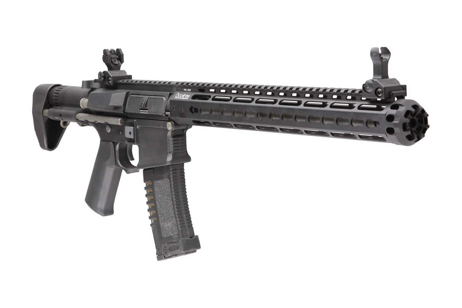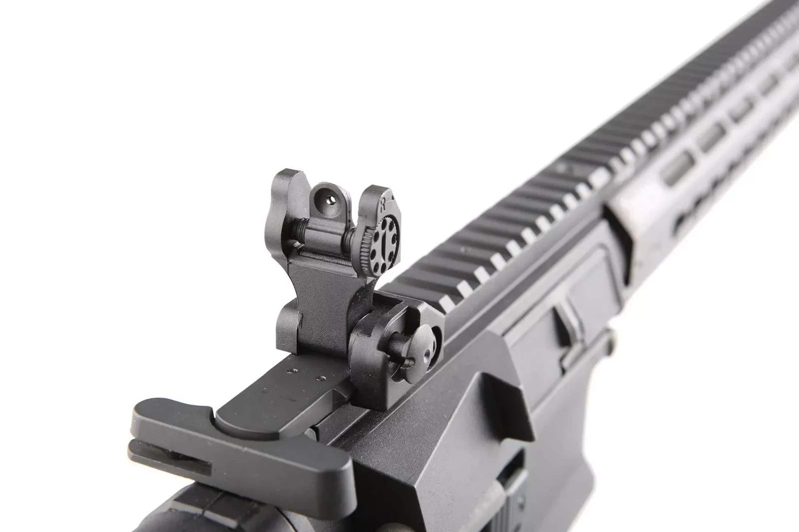 AM-016 posiada modularny zespół chwytu przedniego Octarms w układzie KeyMod, pozwalający na pełne dostosowanie repliki do indywidualnych potrzeb użytkownika. Do zespołu przyłączyć można segmenty szyn RIS 22mm w wielu położeniach, dzięki otworom umieszczonym wokół chwytu. Szyna RIS znajduje się również na grzbiecie korpusu, dzięki czemu można zainstalować na replice całą gamę akcesoriów dodatkowych, począwszy od celowników optycznych, po oświetlenie. Karabinek posiada mechaniczne przyrządy celownicze: składaną muszkę oraz przeziernik typu flip-up, mocowane na szynę RIS.