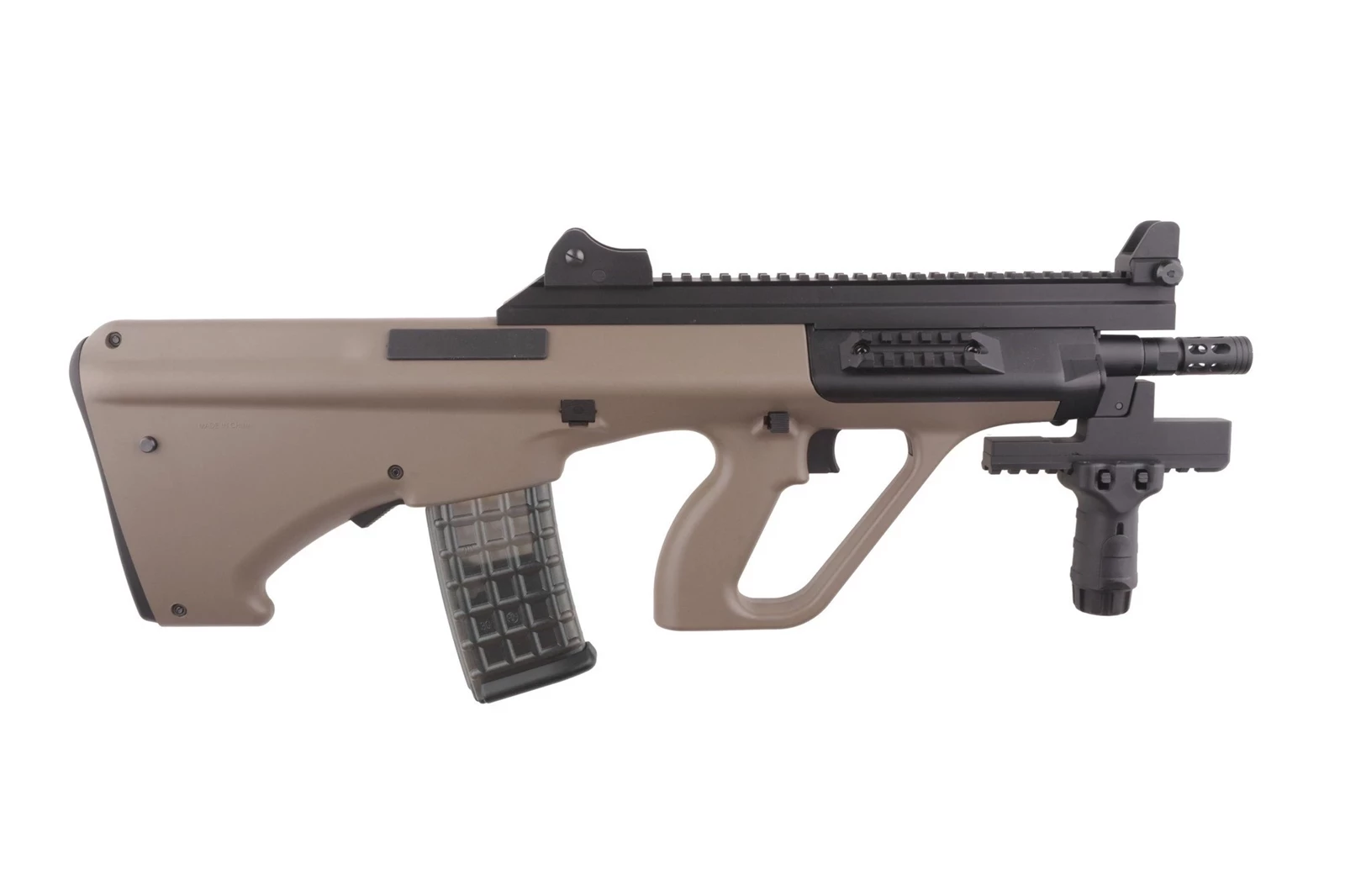Replika posiada dwie szyny RIS; jedną grzbietową, zaopatrzoną w przyrządy celownicze oraz drugą krótką z dołączonym do zestawu front gripem.