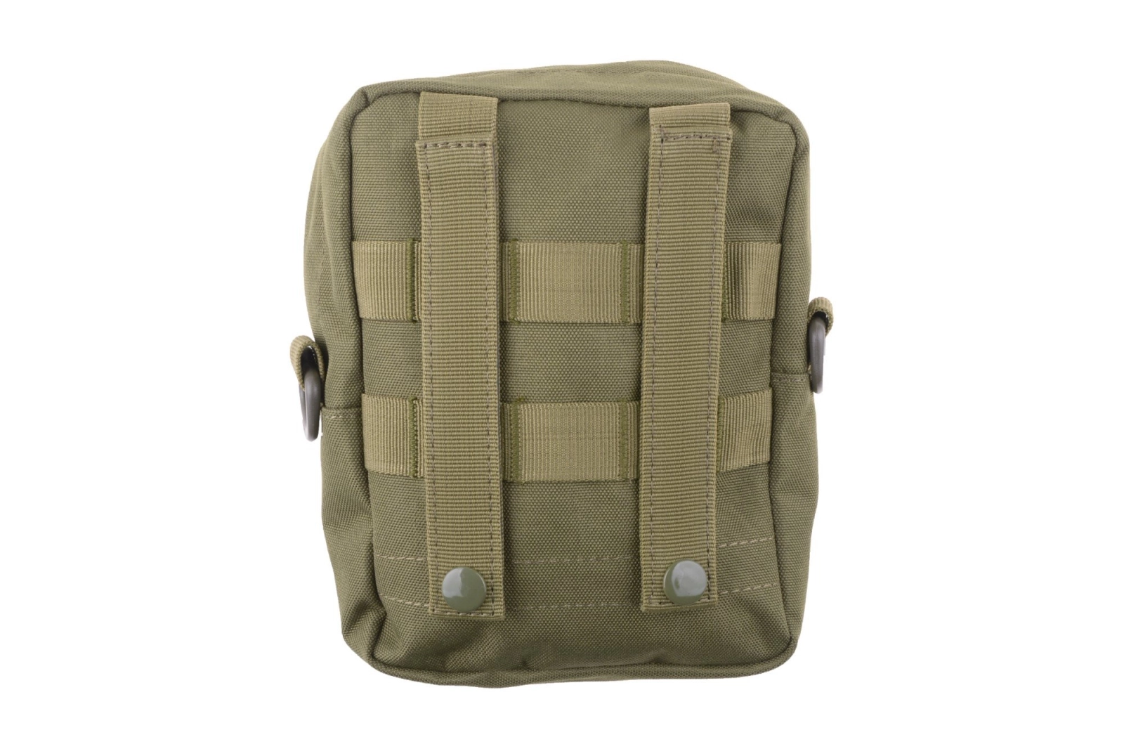 Zaopatrzona w montaż na taśmy molle kieszeń została podgumowana z wewnątrz co przekłada się na utrzymanie wysokiej granicy wodoodporności. Na przedniej ścianie znajduje się kieszonka zapinana na zamek błyskawiczny, dwa poziomy palsów molle oraz mały panel rzepowy do przyczepienia np. naszywki. Po bokach ładownicy umieszczono dwa d-ringi które umożliwiają stworzenie z ładownicy małej torby.