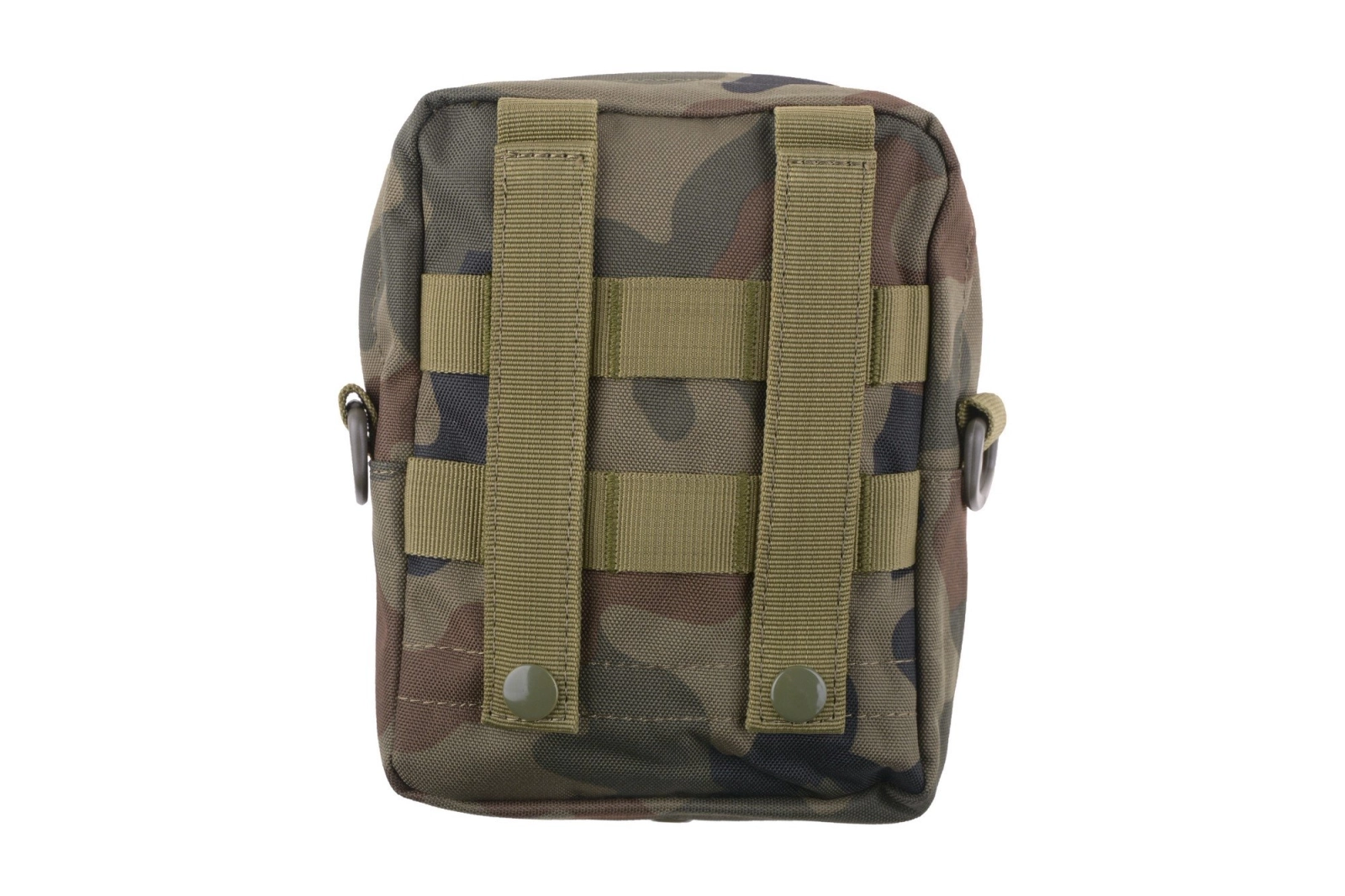 Zaopatrzona w montaż na taśmy molle kieszeń została podgumowana z wewnątrz co przekłada się na utrzymanie wysokiej granicy wodoodporności. Na przedniej ścianie znajduje się kieszonka zapinana na zamek błyskawiczny, dwa poziomy palsów molle oraz mały panel rzepowy do przyczepienia np. naszywki. Po bokach ładownicy umieszczono dwa d-ringi które umożliwiają stworzenie z ładownicy małej torby.