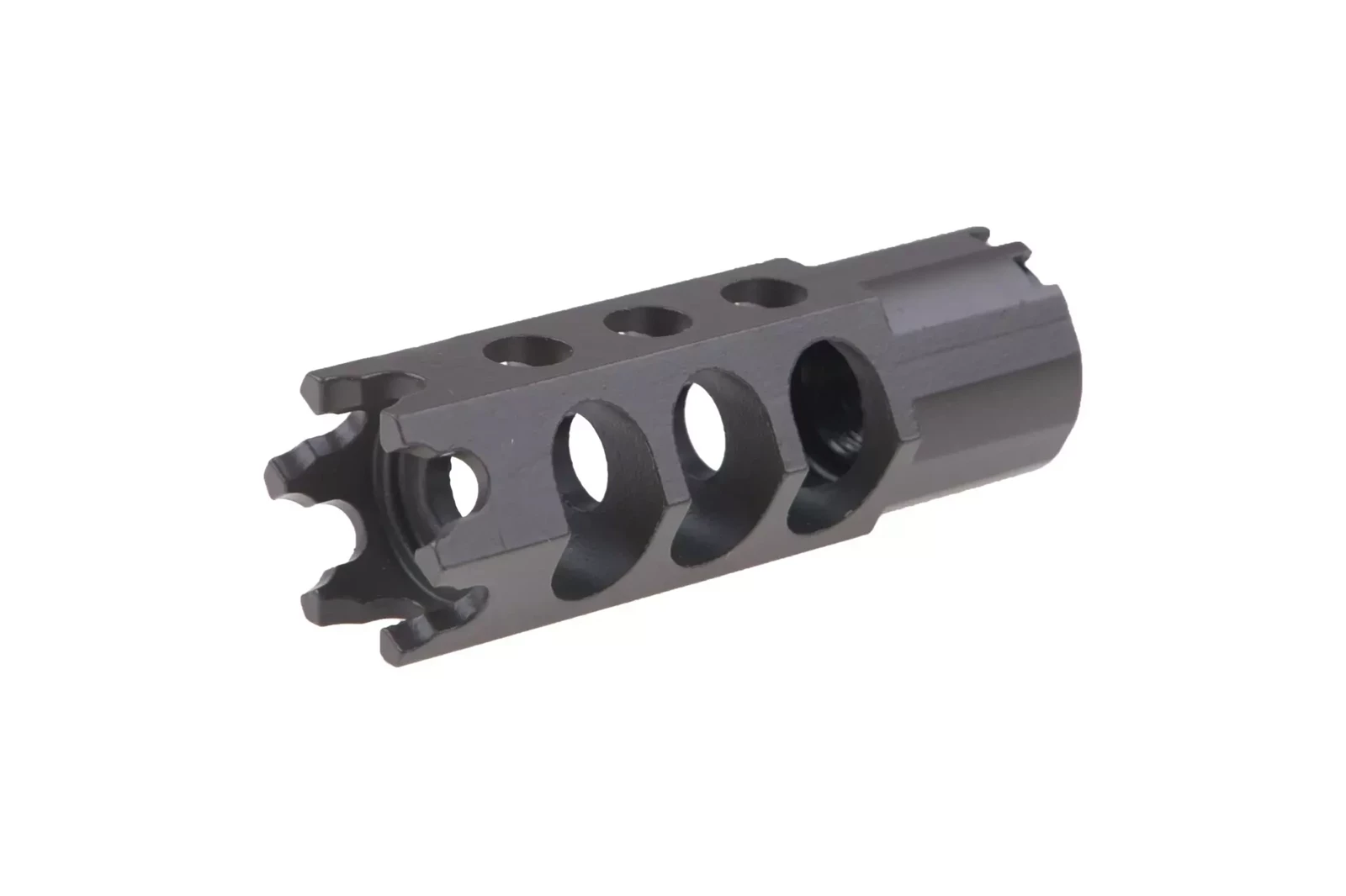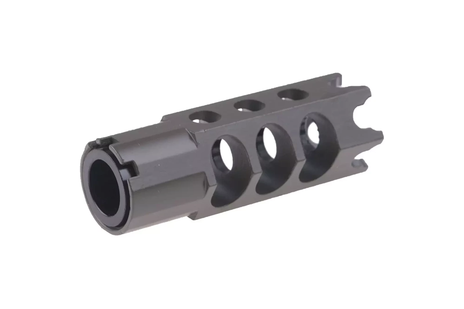 Wykonany ze stali tłumik płomieni typu DTK1 przeznaczony do montażu w replikach typu AK które wyposażone są w gwint 14mm CCW.