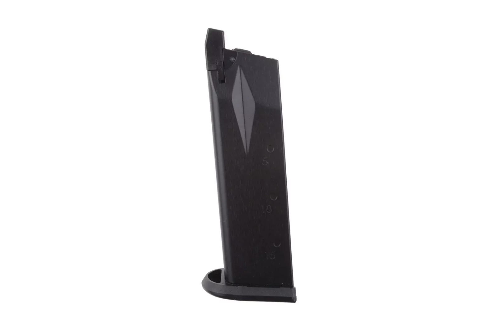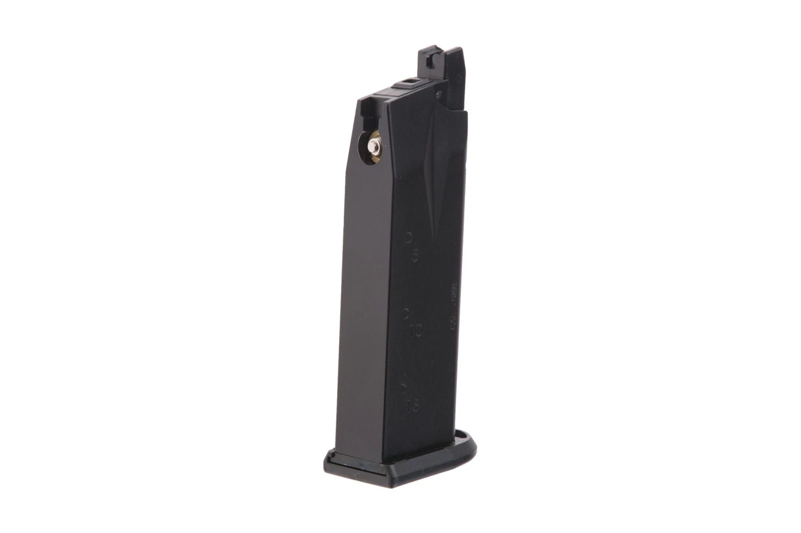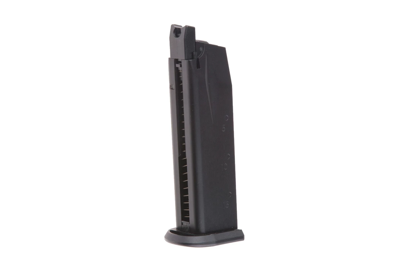 Wykonany z metalu i tworzywa sztucznego gazowy magazynek mieszczący 22 kulek do repliki pistoletu E99 firmy WE.