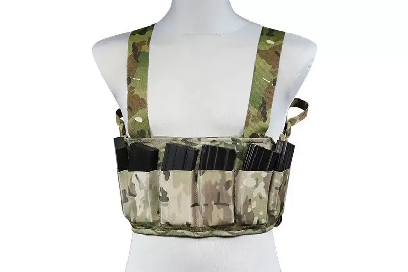 Kamizelka Speed Chest Rig to wytrzymała i wyjątkowo lekka kamizelka niskoprofilowa. Kamizelka to typowy chest rig przystosowany do przenoszenia 6 magazynków w standardzie STANAG ( M4 / M16 ). Pojemność ładownic pozwala jednak swobodnie przenosić również magazynki standardu AUG, AK a nawet G36.
