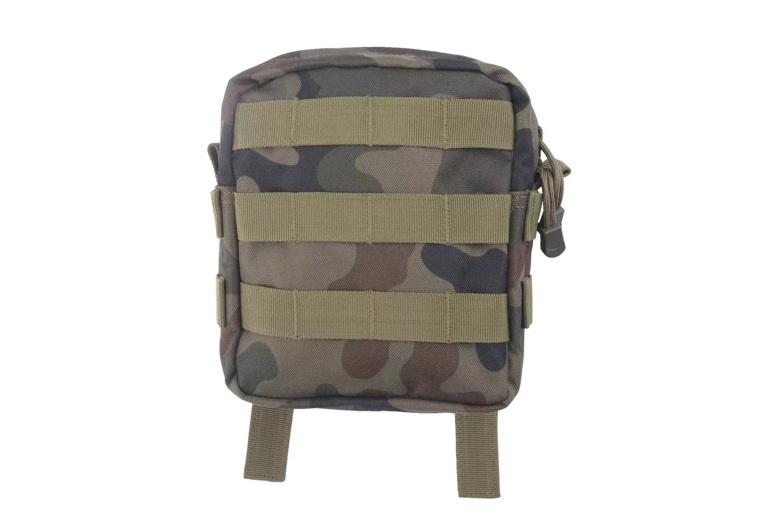 Zaopatrzona w montaż na taśmy molle kieszeń została podgumowana z wewnątrz co przekłada się na utrzymanie wysokiej granicy wodoodporności. Cała przednia ściana kieszeni została pokryta taśmami systemu modułowego MOLLE, co pozwala na zamocowanie dodatkowego wyposażenia.