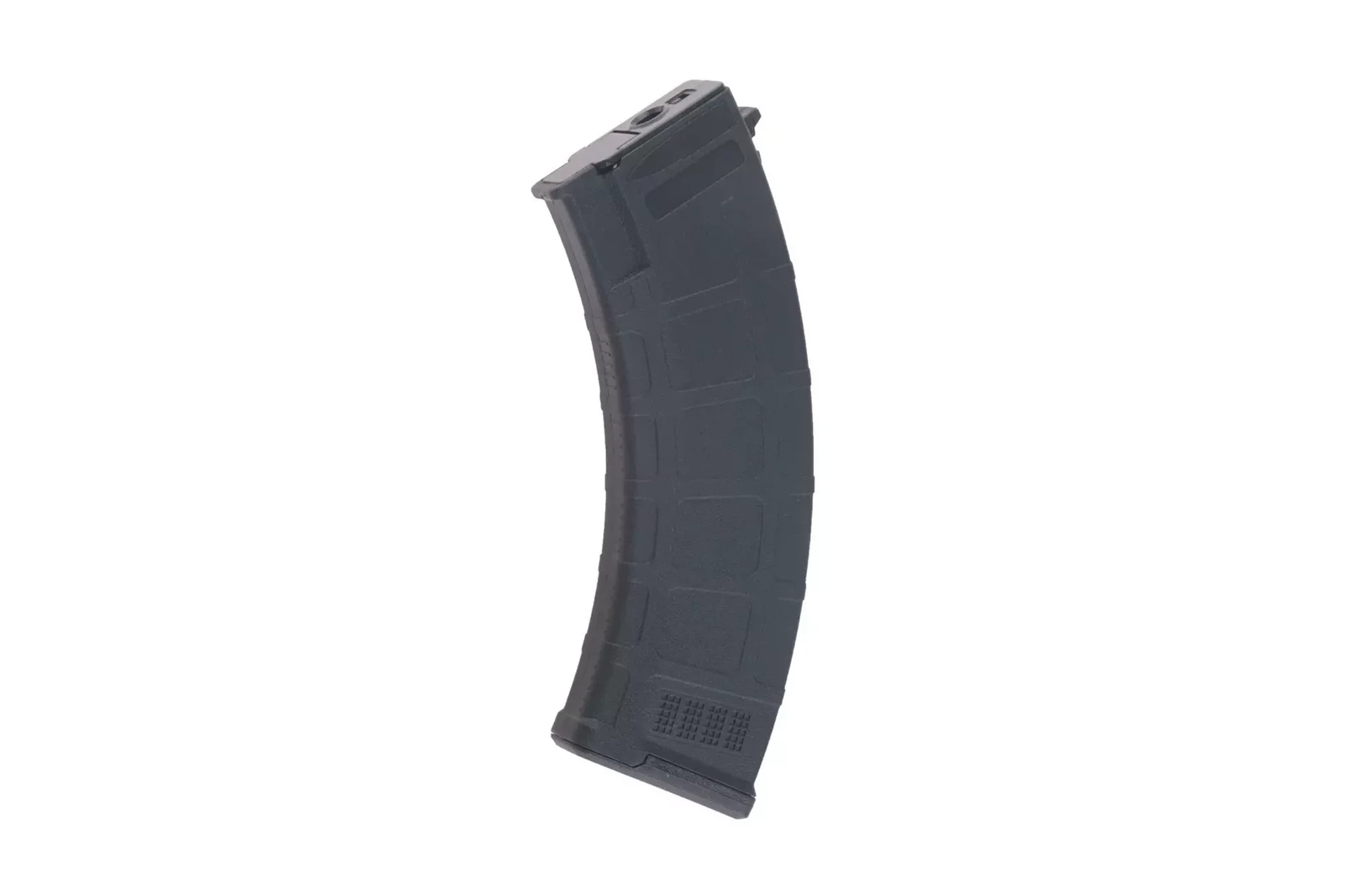 Wykonany z wytrzymałego tworzywa sztucznego magazynek hi-cap o pojemności 600 kulek posiada antypoślizgową fakturę oraz żebrowania ułatwiające operowanie magazynkiem nawet w rękawicach.