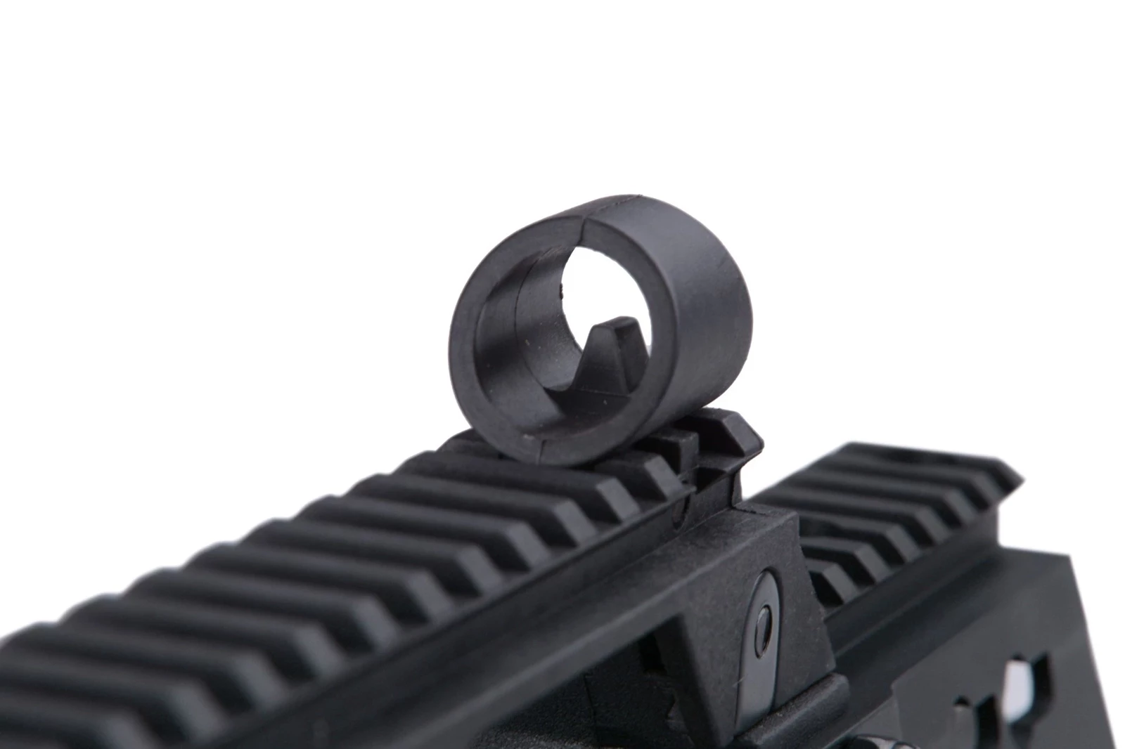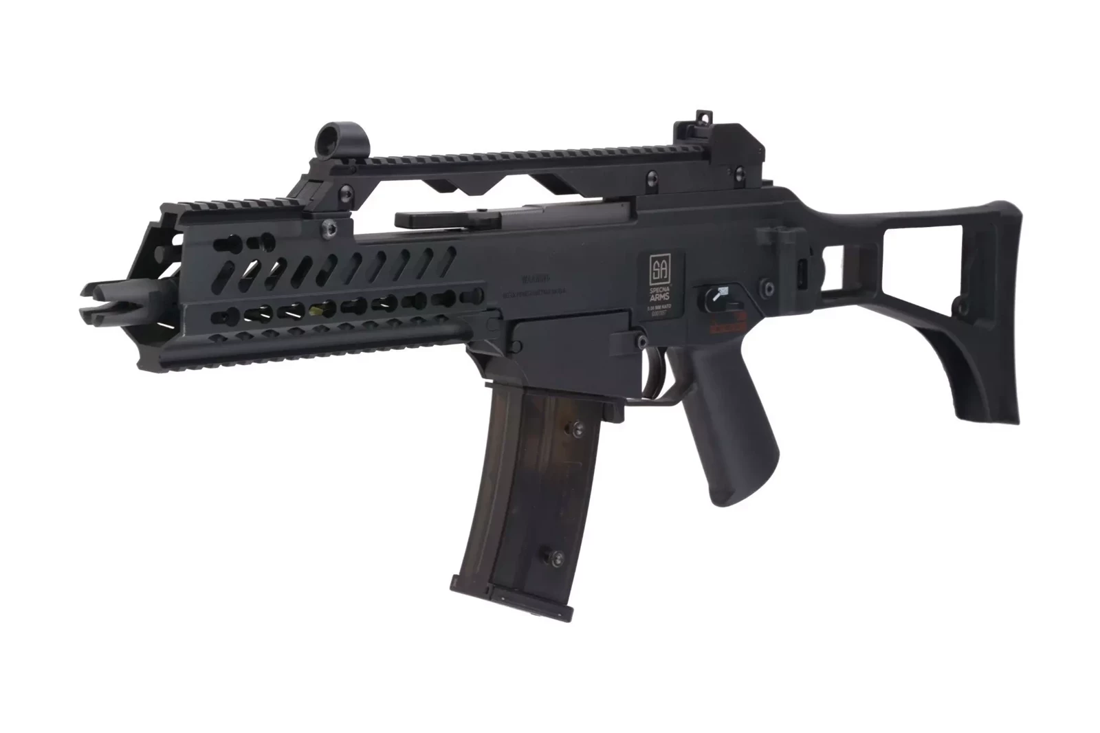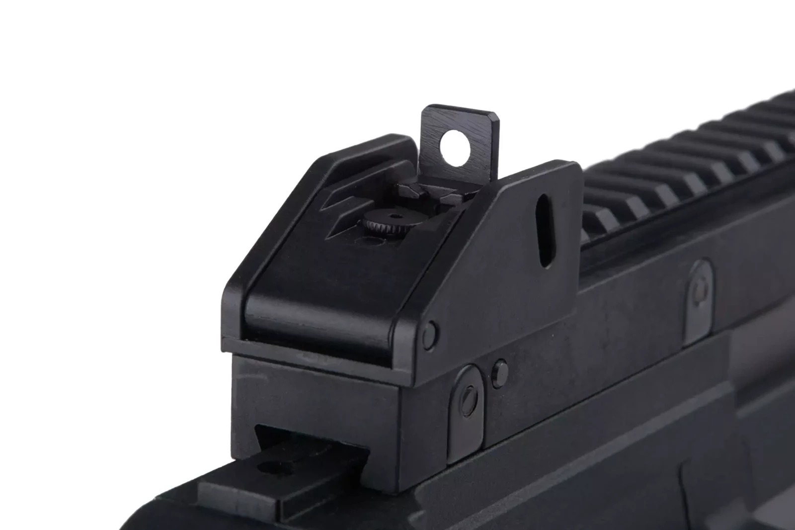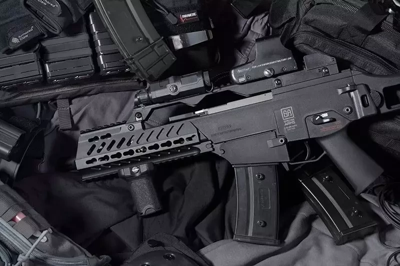 Replikę charakteryzuje bardzo dobre spasowanie, wykonano ją z przyjemnego dla oka matowego polimeru. Ważniejsze elementy połączono pinami, w ten sposób możemy zmieniać poszczególne elementy jak chociażby gniazdo magazynków. Wykonany z solidnego polimeru korpus repliki posiada indywidualny numer seryjny, oznaczenia producenta oraz estetyczne oznaczenia selektora ognia. Na grzbiecie repliki zastosowano klasyczny chwyt transportowy z szyną RIS 22mm a także regulowane, stałe przyrządy celownicze. Replika posiada składaną na bok kolbę co ułatwi transport a także operowanie w ciasnych pomieszczeniach budynków. Metalową lufę repliki zakończono tłumikiem płomieni osadzonym na gwincie 14mm CW.